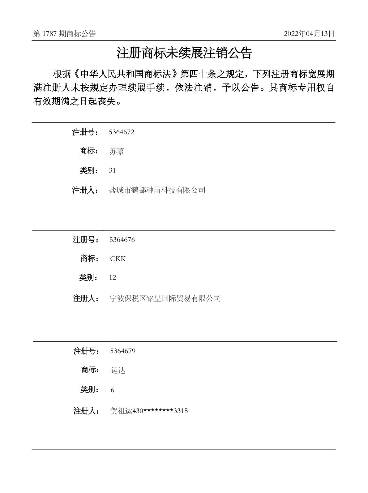 2022-04-13 期满未续展注销商标 | 排版未续展注销公告