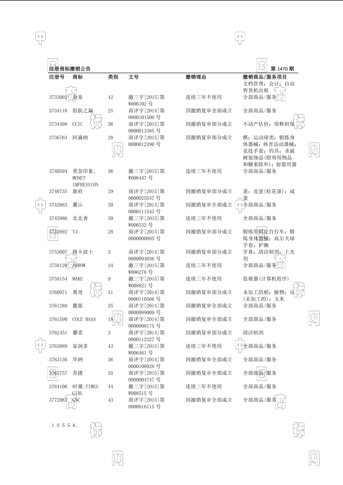 2015-05-08 撤销连续三年停止使用注册商标 | 撤销商标通知发文
