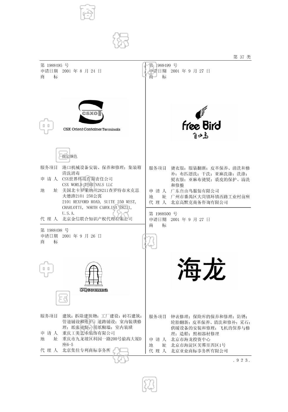 3703-采石;3705-供暖设备的安装和修理;3708-飞机的保养与修理;3709-造船;3710-照相器材修理;3711-钟表修理;3712-保险库的保养和修理;3712-防锈;3714-轮胎翻新;3716-皮革保养、清洗和修补 - 862