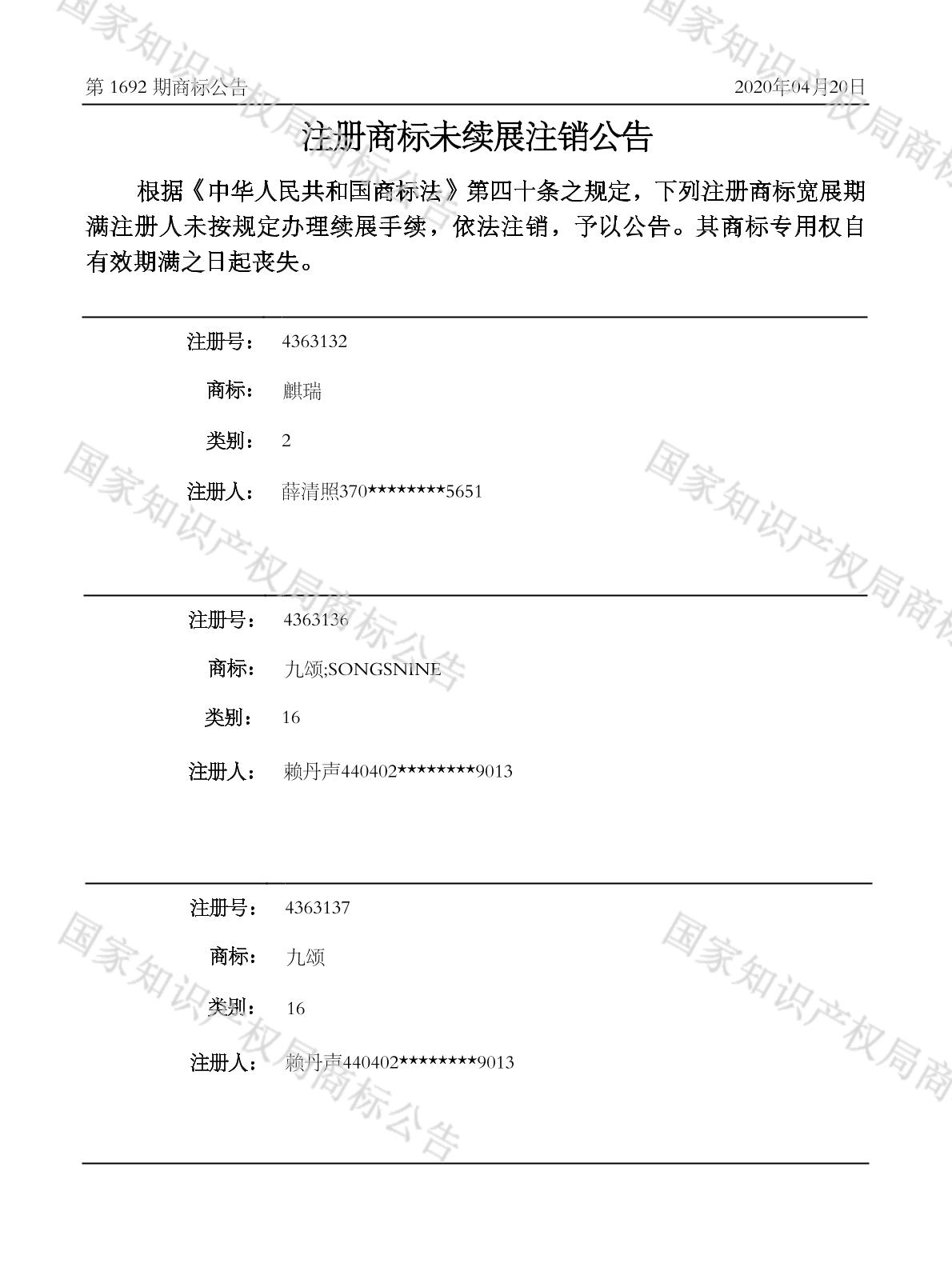 2020-04-20 期满未续展注销商标 | 排版未续展注销公告