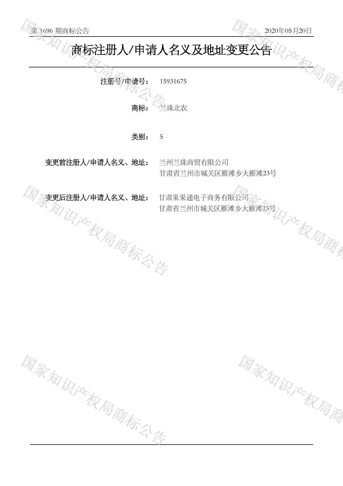 2020-05-10 变更商标申请人/注册人名 义/地址 | 核准证明打印发送