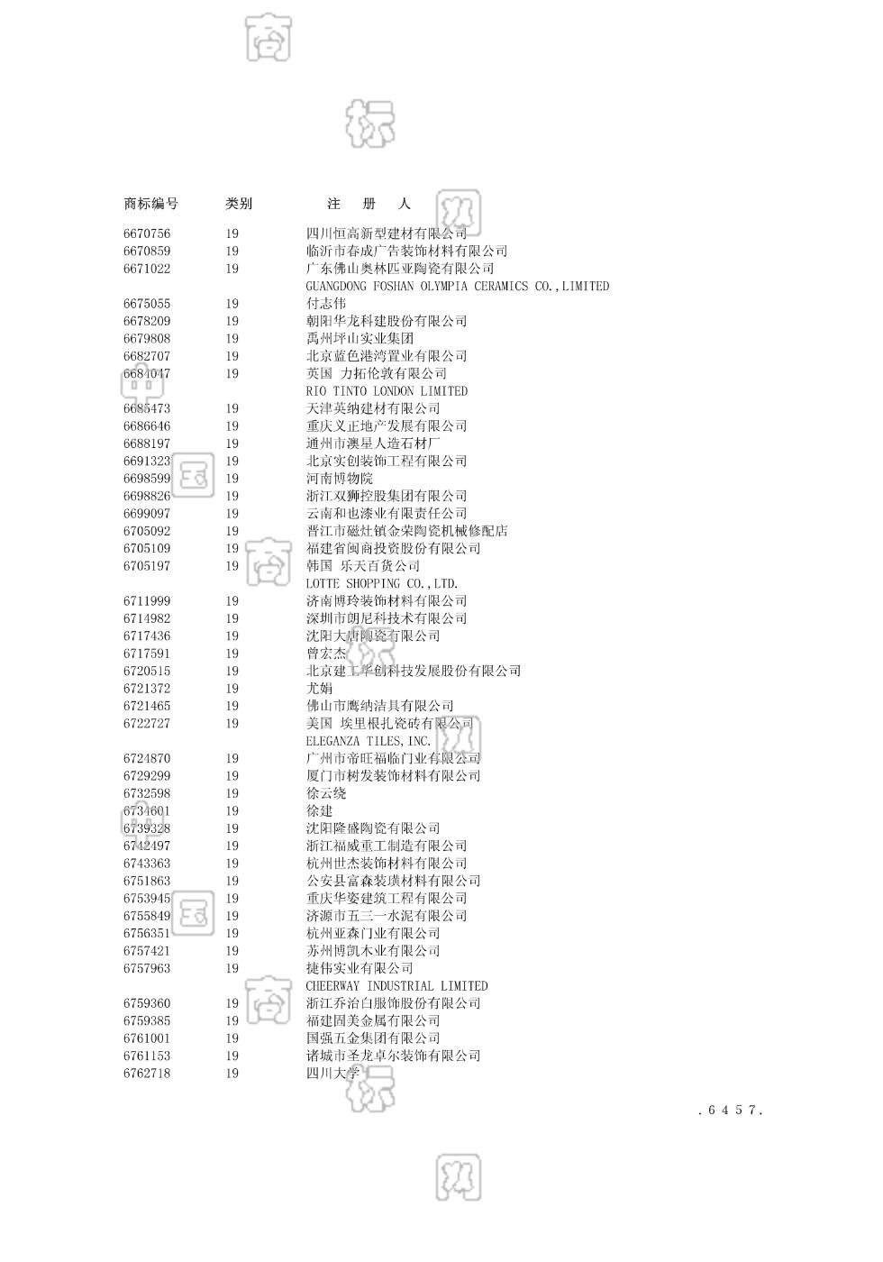注册商标续展公告 2019-10-06 第1666期 查看公告