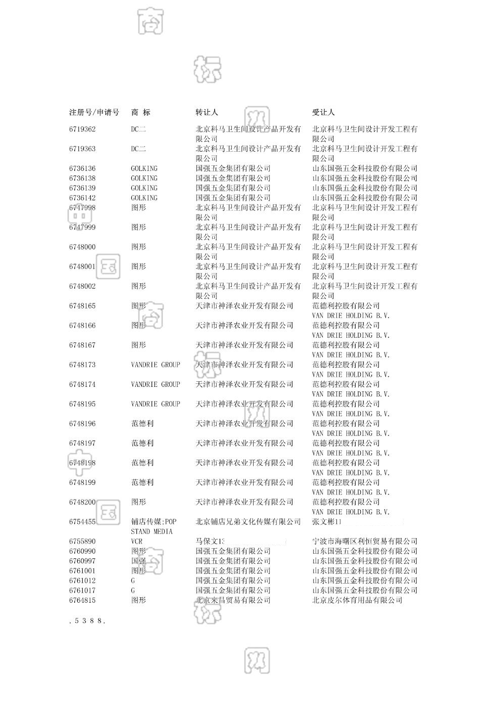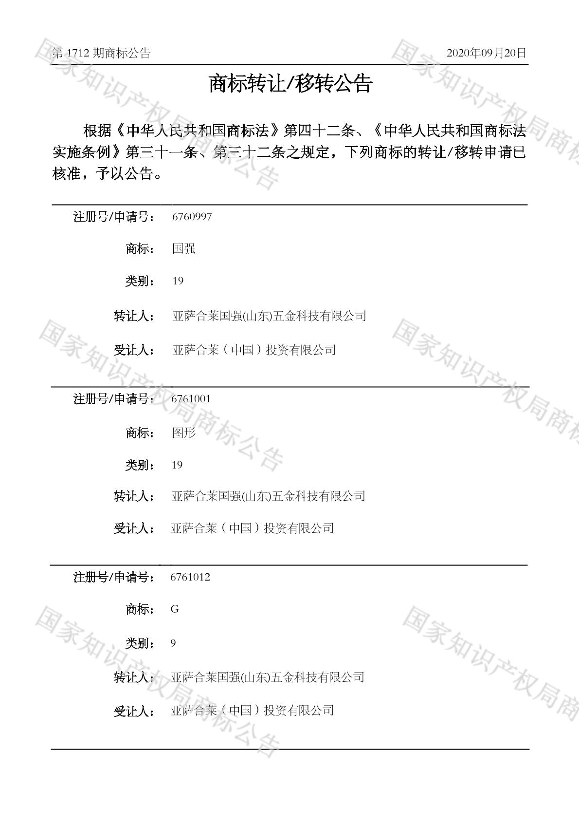 商标转让/移转公告 2020-09-20 第1712期 查看公告