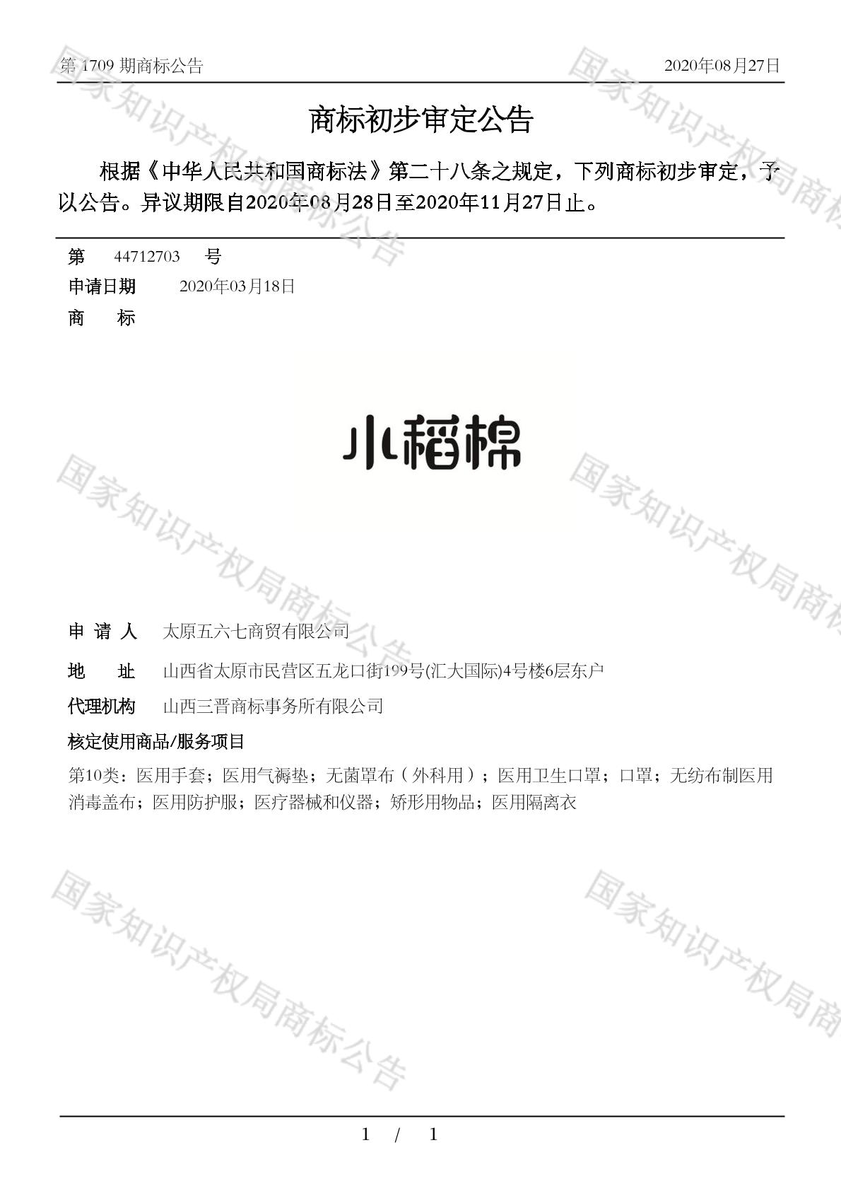 1001-医疗器械和仪器;1004-医用卫生口罩;1004-医用手套;1004-医用气褥垫;1004-医用防护服;1004-医用隔离衣;1004-口罩;1004-无纺布制医用消毒盖布;1004-无菌罩布(外科用);1008-矫形用物品 - 1709