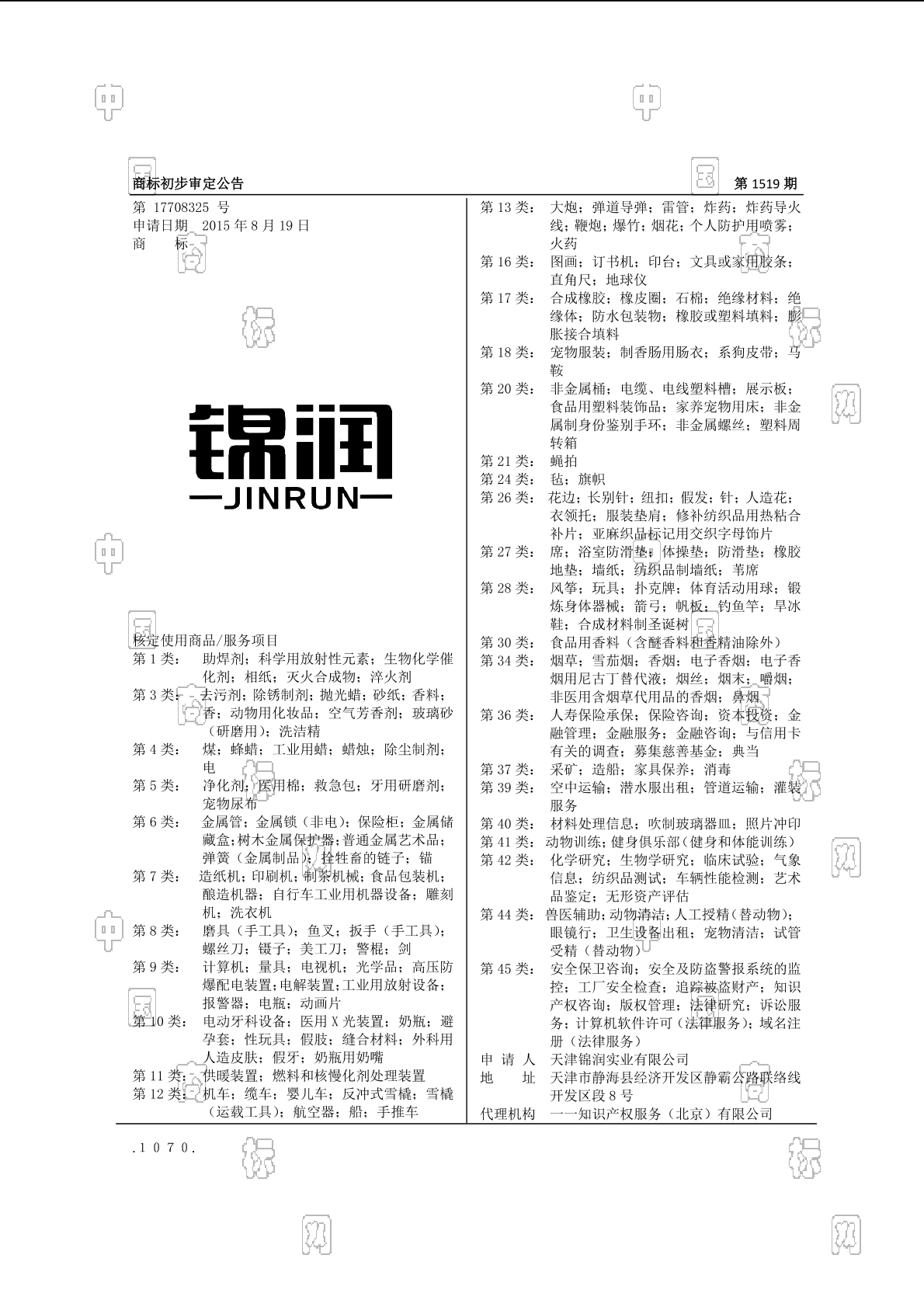0602-金属管;0607-五金器具;0608-五金器具;0609-五金器具;0610-金属锁(非电);0611-保险柜;0612-弹簧(金属制品);0613-金属储藏盒;0615-拴牲畜的链子;0617-锚;0620-树木金属保护器;0622-普通金属艺术品 - 1519