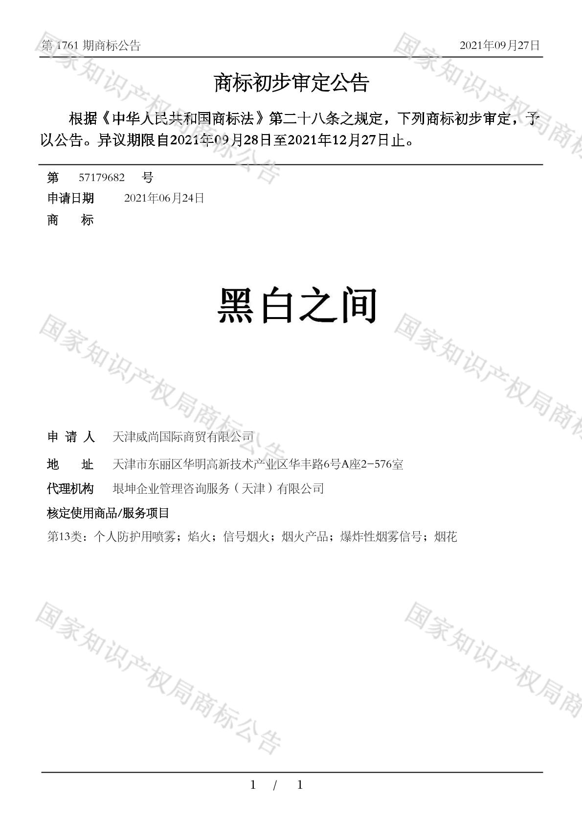 1303-信号烟火;1303-烟火产品;1303-烟花;1303-焰火;1303-爆炸性烟雾信号;1304-个人防护用喷雾 - 1761