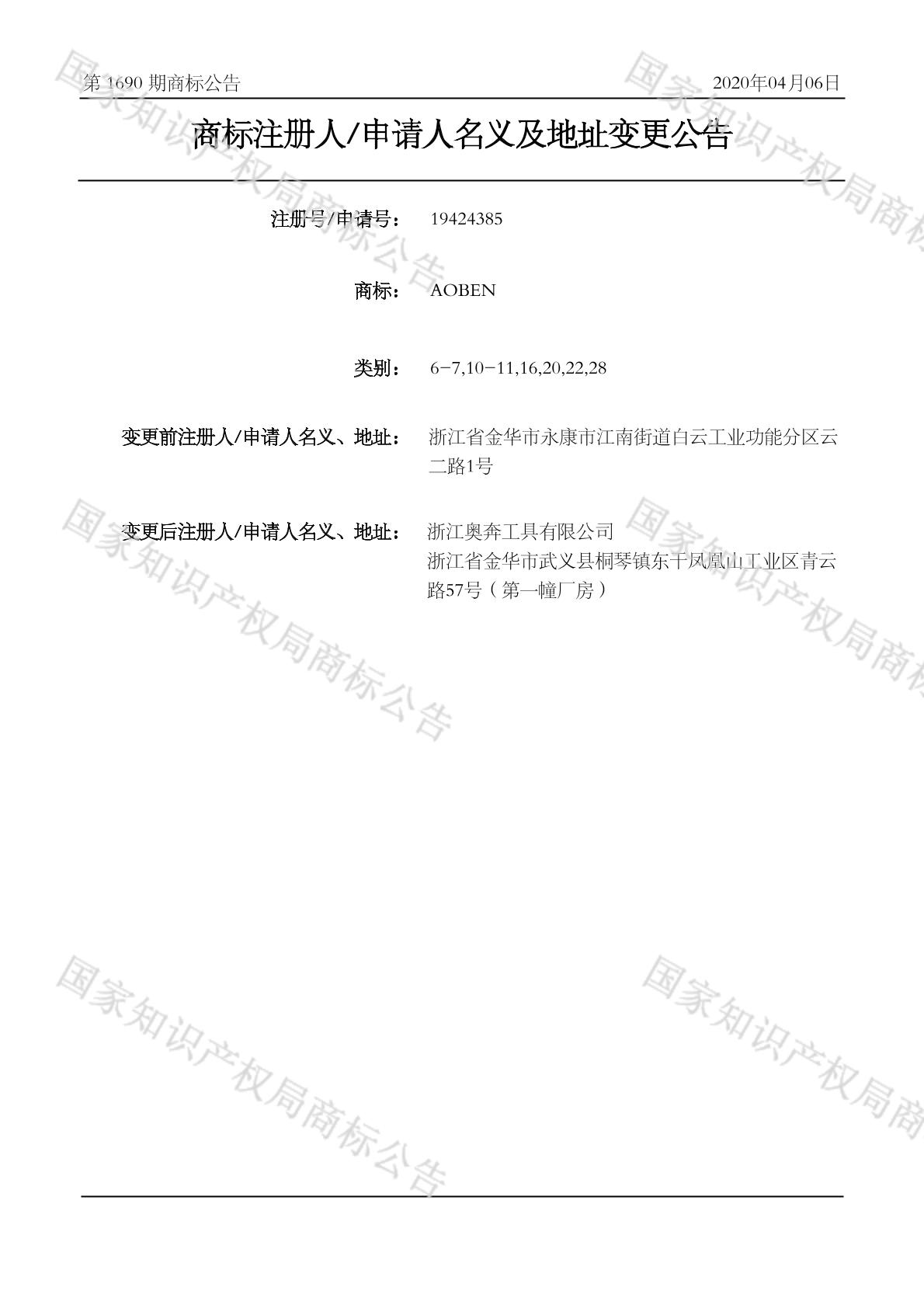 2020-03-24 变更商标申请人/注册人名义/地址 | 申请收文