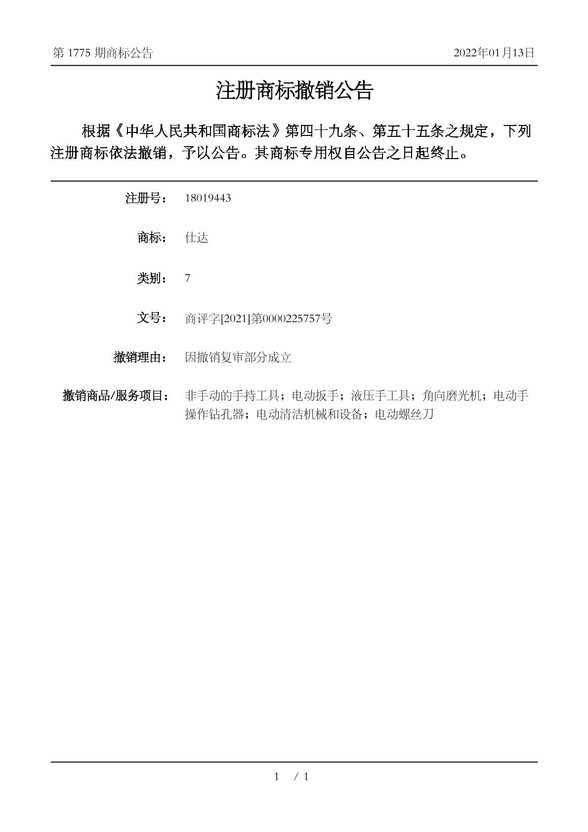 2022-01-19 撤销注册商标复审 | 等待打印注册证