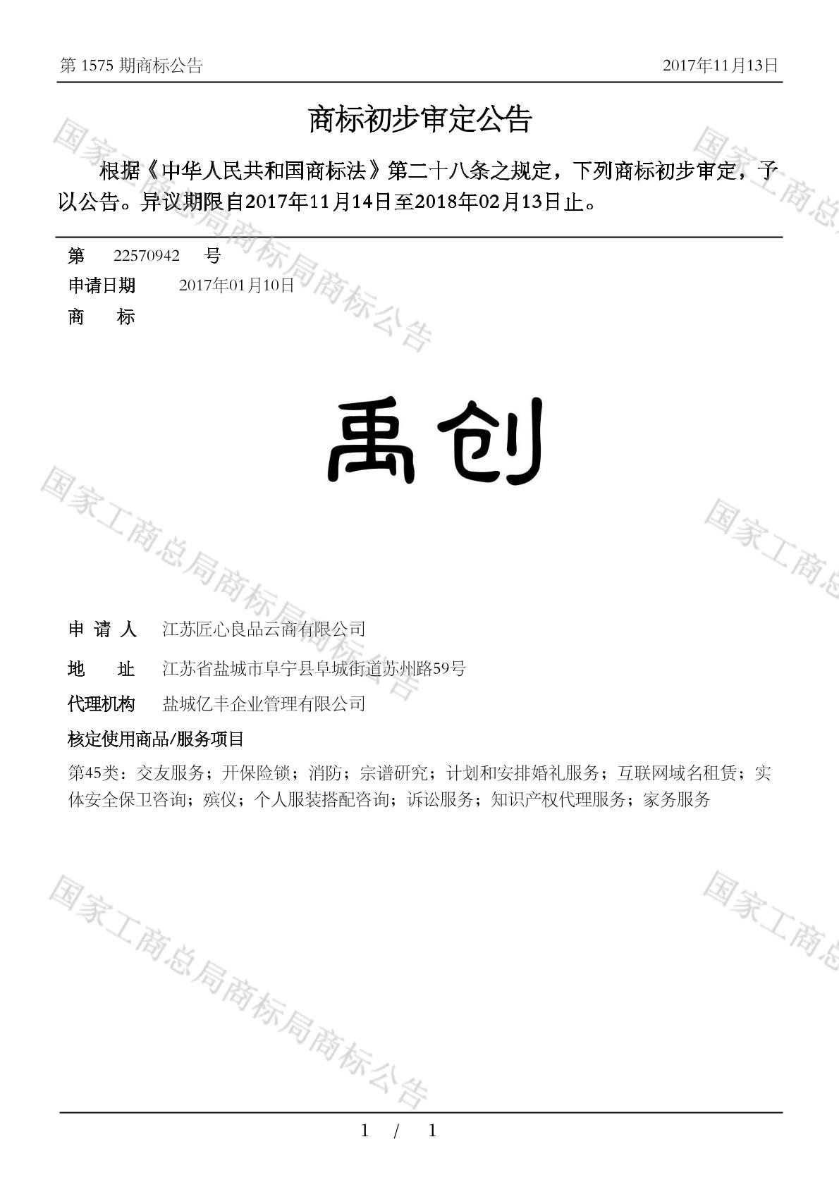 2017-04-14 商标注册申请 | 排版送达公告(商标注册申请受理通知书)