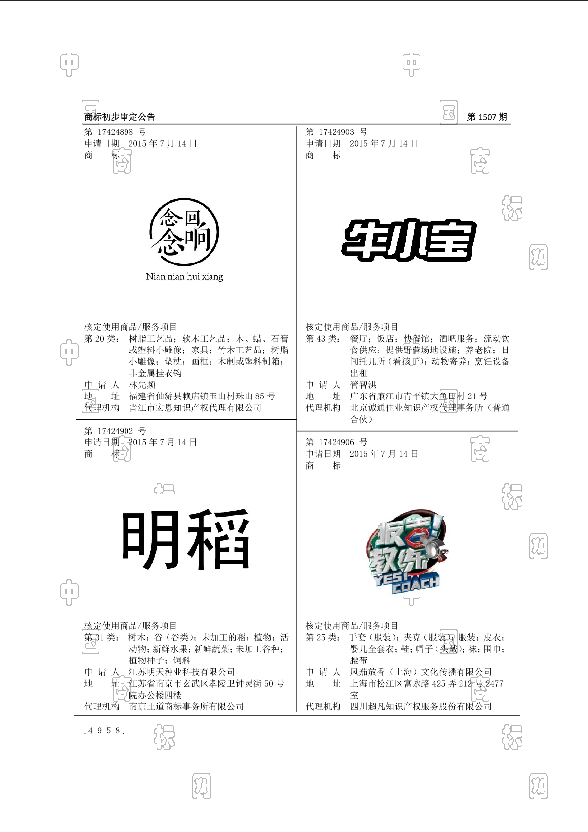 2001-家具;2002-木制或塑料制箱;2004-画框;2005-竹木工艺品;2006-木、蜡、石膏或塑料小雕像;2006-树脂小雕像;2006-树脂工艺品;2006-软木工艺品;2012-非金属挂衣钩;2013-垫枕 - 1507