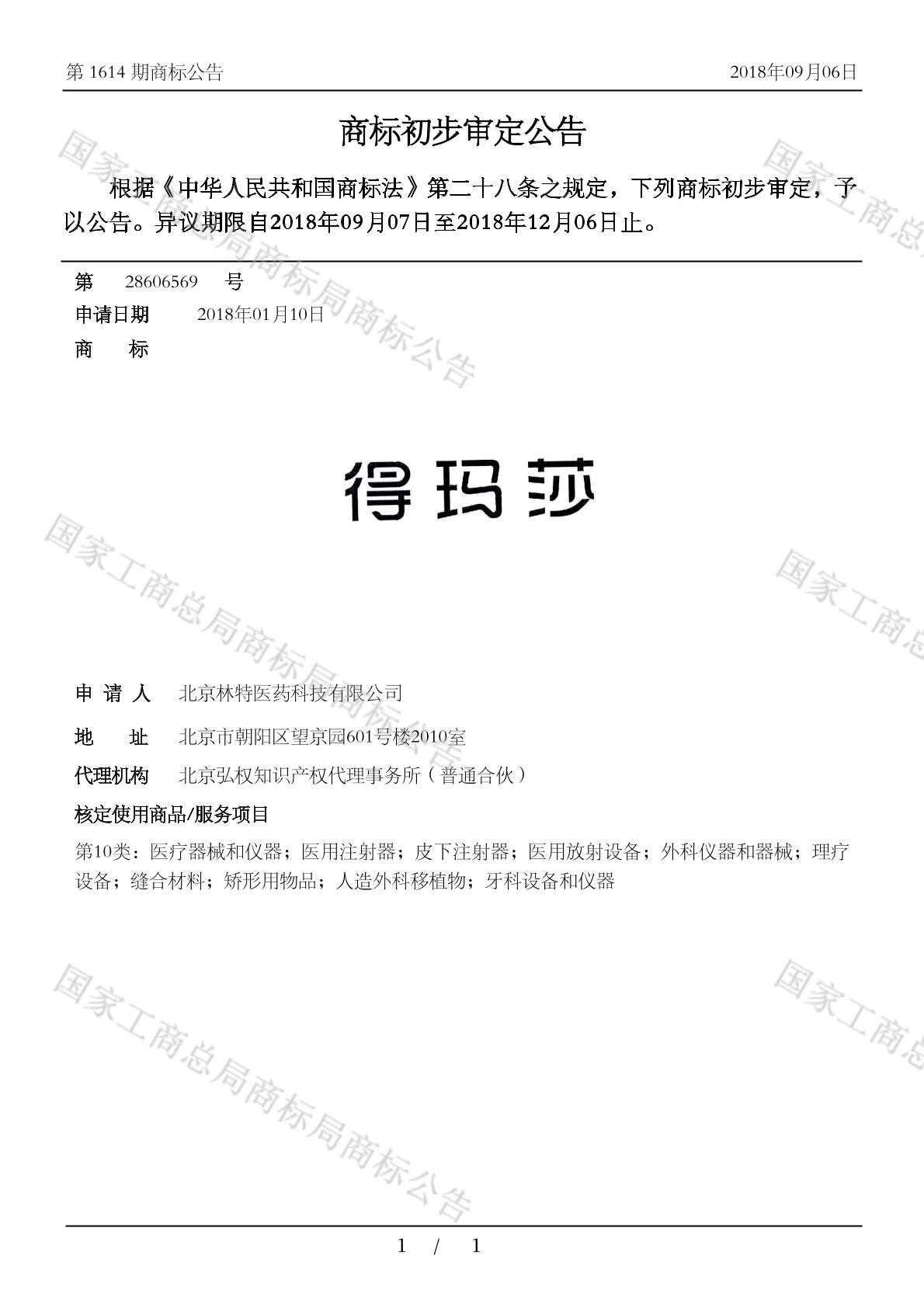 1001-医用注射器;1001-医疗器械和仪器;1001-外科仪器和器械;1001-皮下注射器;1002-牙科设备和仪器;1003-医用放射设备;1003-理疗设备;1007-人造外科移植物;1008-矫形用物品;1009-缝合材料 - 1614