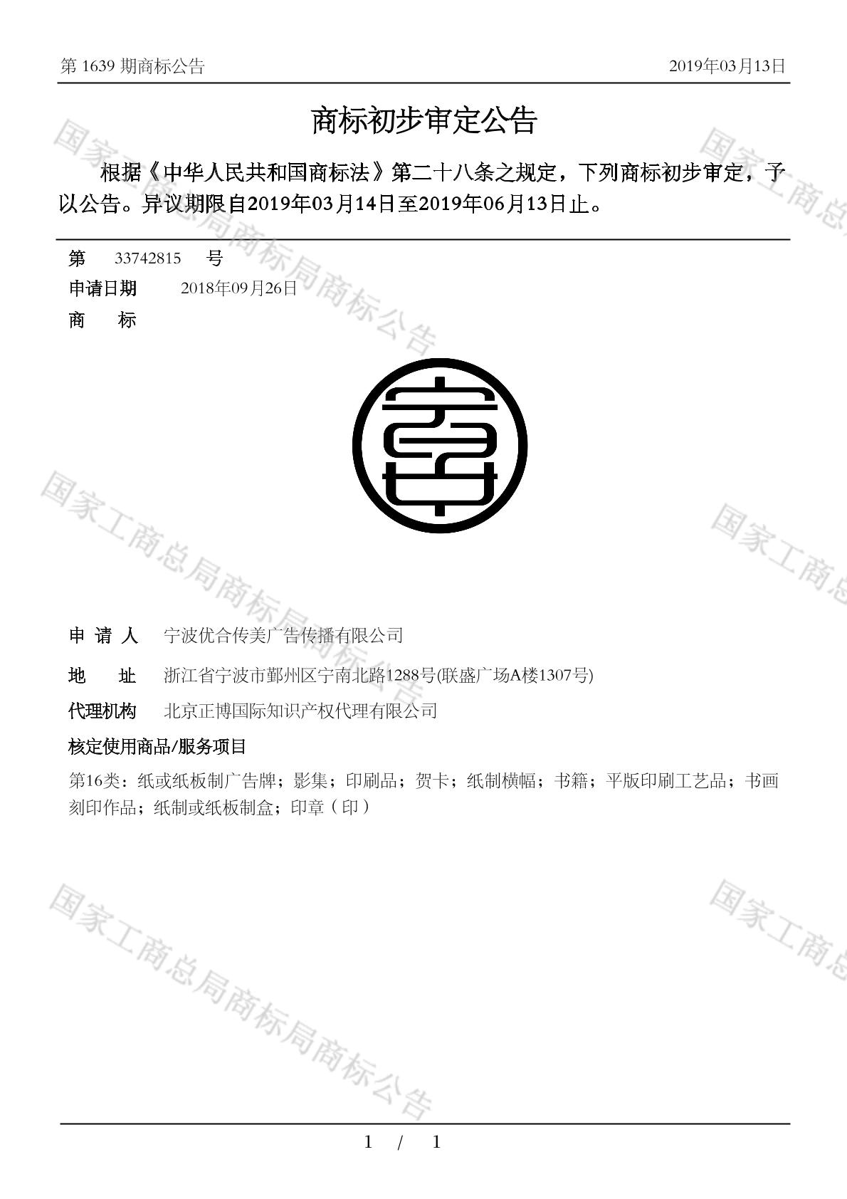 1604-纸或纸板制广告牌;1605-印刷品;1605-影集;1605-纸制横幅;1605-贺卡;1606-书籍;1607-书画刻印作品;1607-平版印刷工艺品;1609-纸制或纸板制盒;1613-印章(印) - 1639