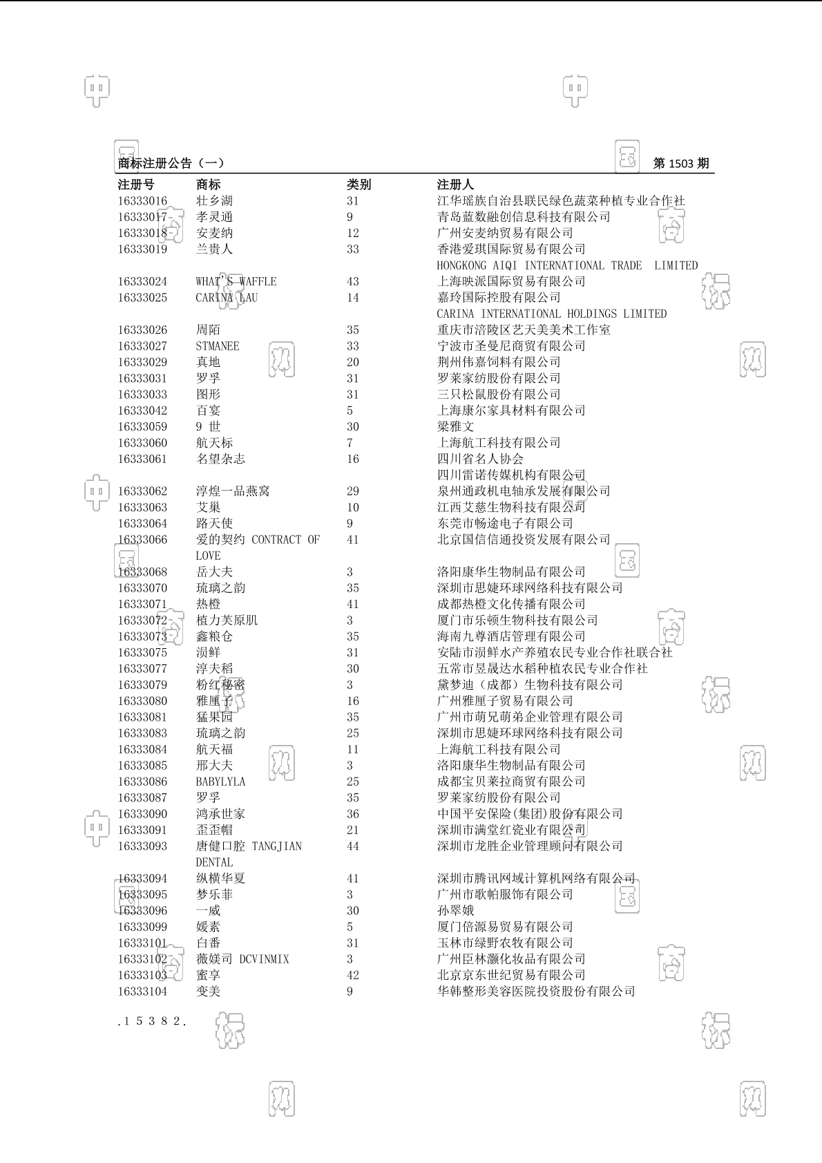 2016-05-15 商标注册申请 | 商标注册申请注册公告排版完成
