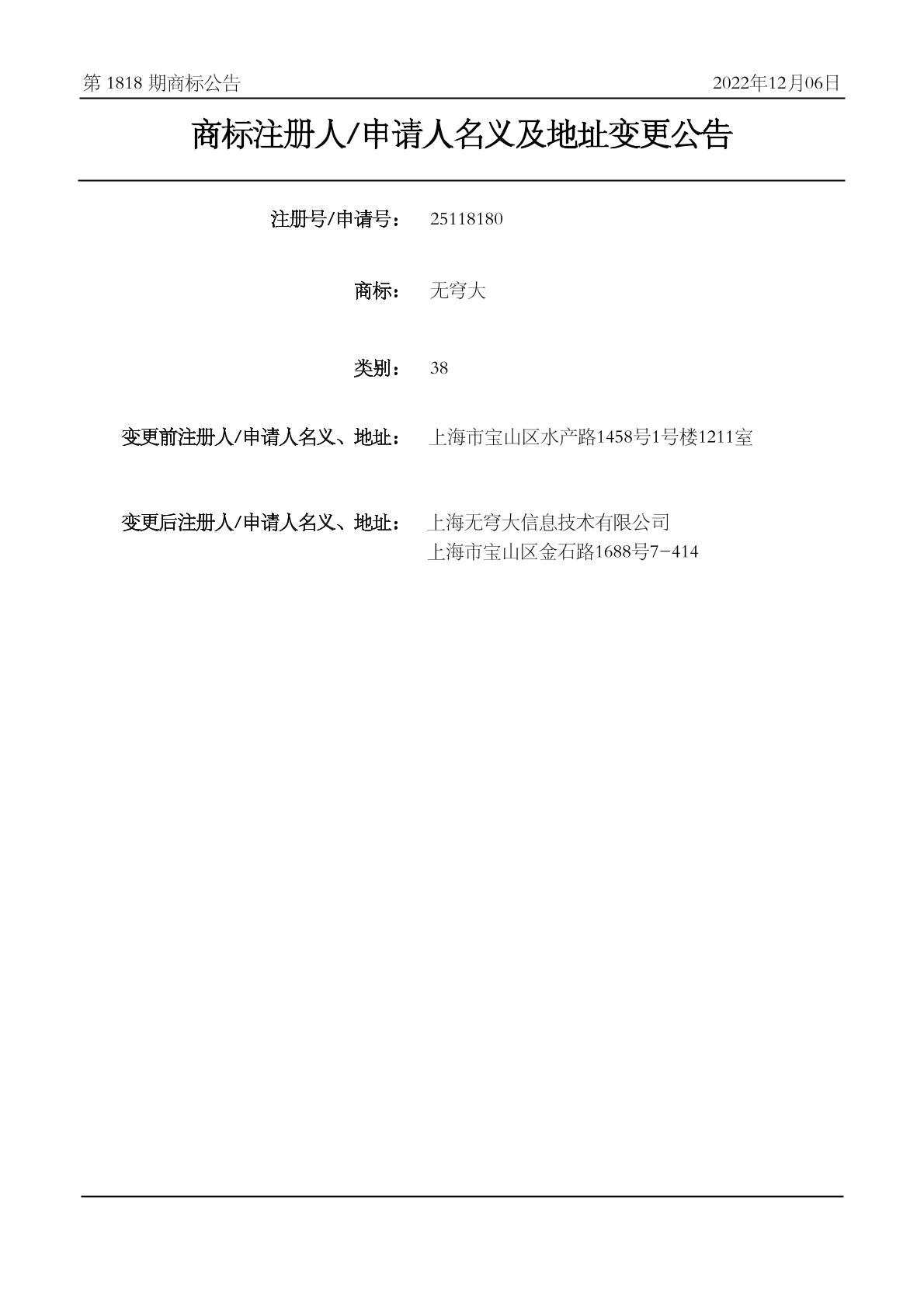 2022-12-03 变更商标申请人/注册人名义/地址 | 核准证明打印发送