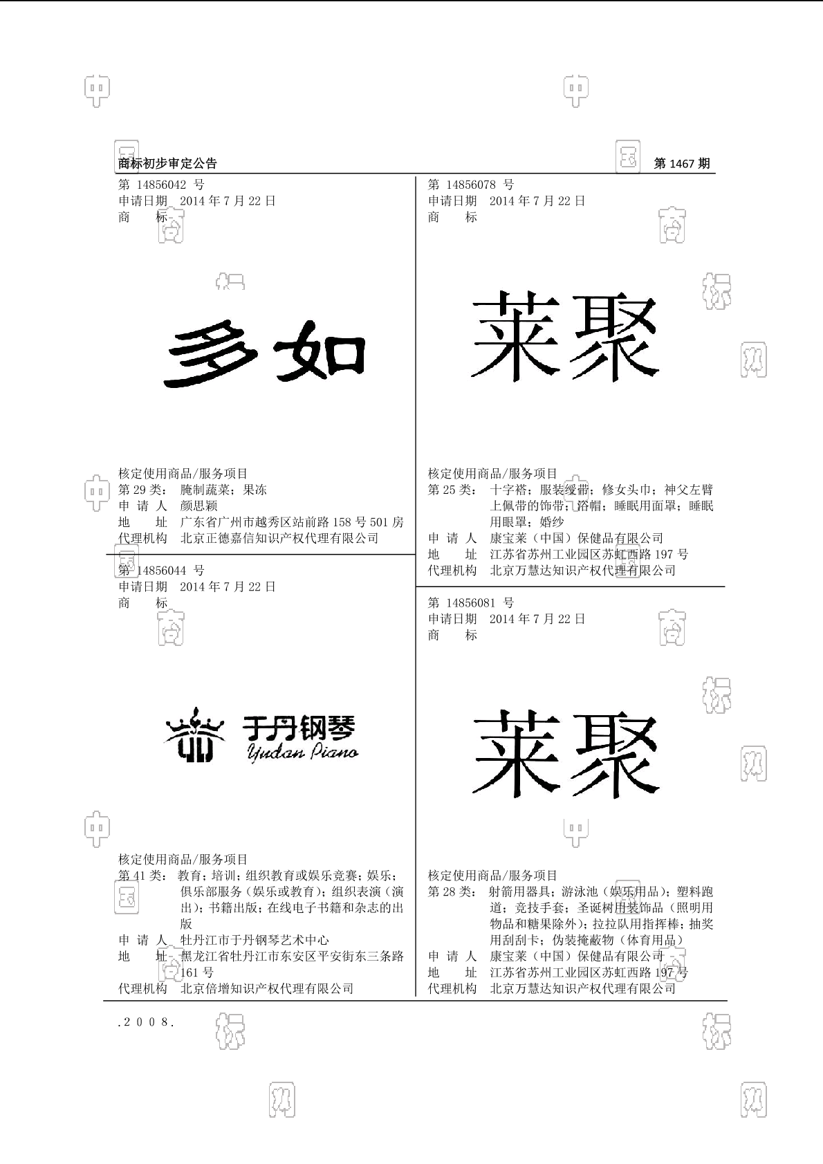 3501-广告;3502-市场研究;3503-市场营销;3503-替他人推销;3503-进出口代理;3504-人事管理咨询;3505-商业企业迁移;3506-复印服务;3507-会计;3508-寻找赞助 - 1467