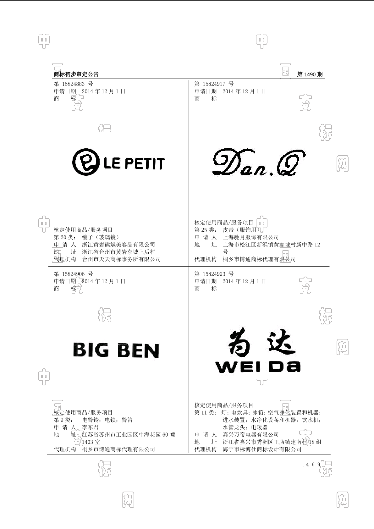 2015-10-31 商标注册申请 | 等待驳回通知发文