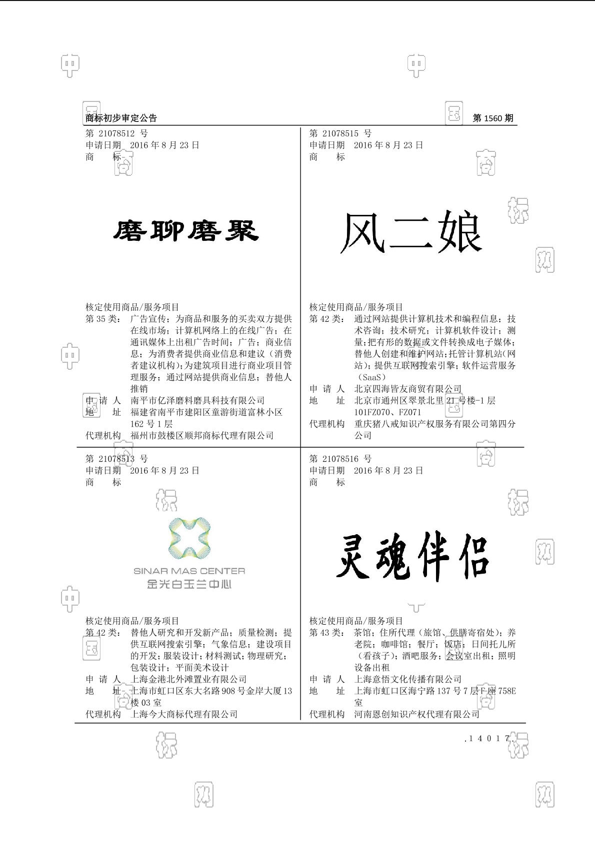 4209-替他人研究和开发新产品;4209-物理研究;4209-质量检测;4213-气象信息;4214-材料测试;4216-包装设计;4217-建设项目的开发;4218-服装设计;4220-提供互联网搜索引擎;4227-平面美术设计 - 1560