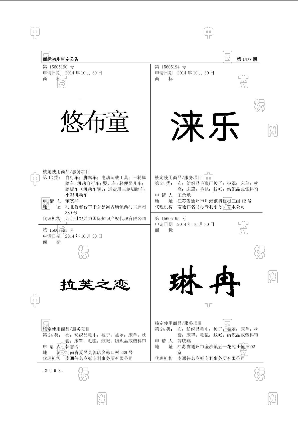 商标初步审定公告 2015-10-27 第1477期 查看公告