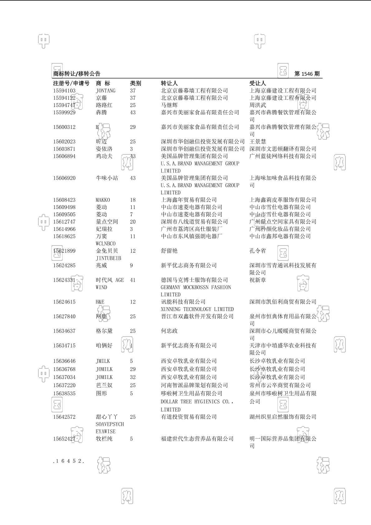 商标转让移转公告 2017-04-06 第1546期 查看公告