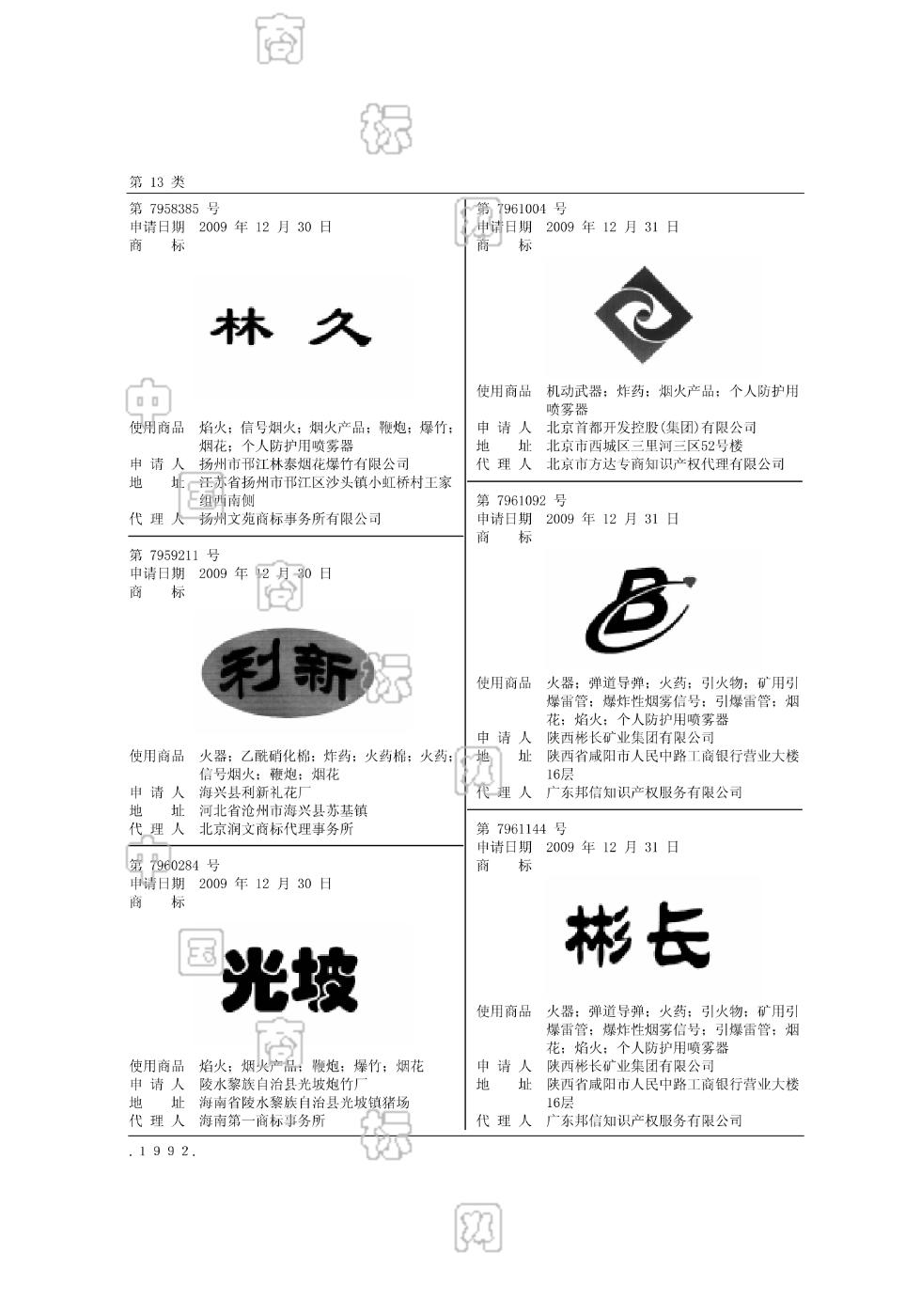 1301-弹道导弹;1301-火器;1302-引火物;1302-引爆雷管;1302-火药;1302-矿用引爆雷管;1303-烟花;1303-焰火;1303-爆炸性烟雾信号;1304-个人防护用喷雾器 - 1246