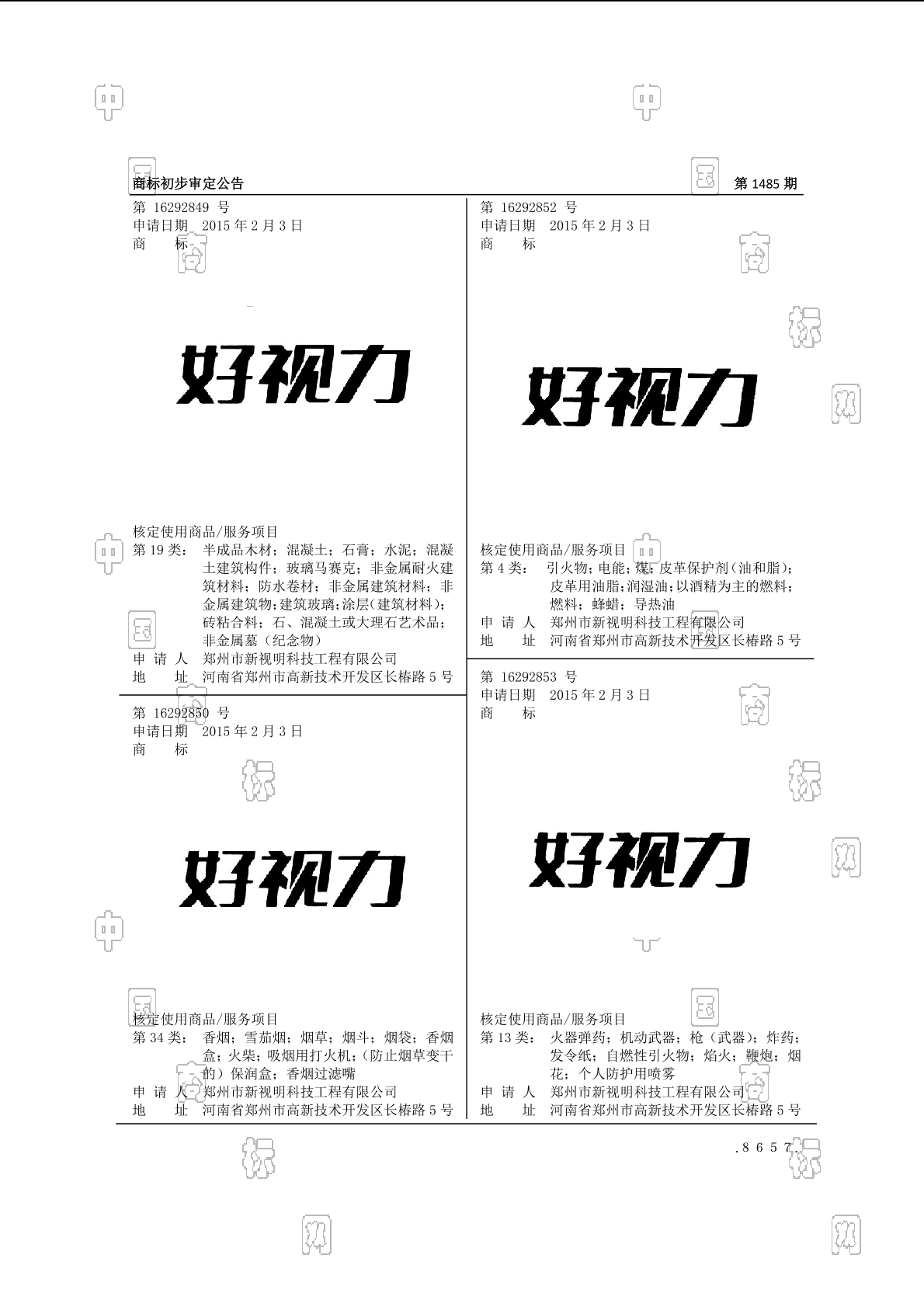 1301-机动武器;1301-枪(武器);1301-火器弹药;1302-发令纸;1302-炸药;1302-自燃性引火物;1303-烟花;1303-焰火;1303-鞭炮;1304-个人防护用喷雾 - 1485