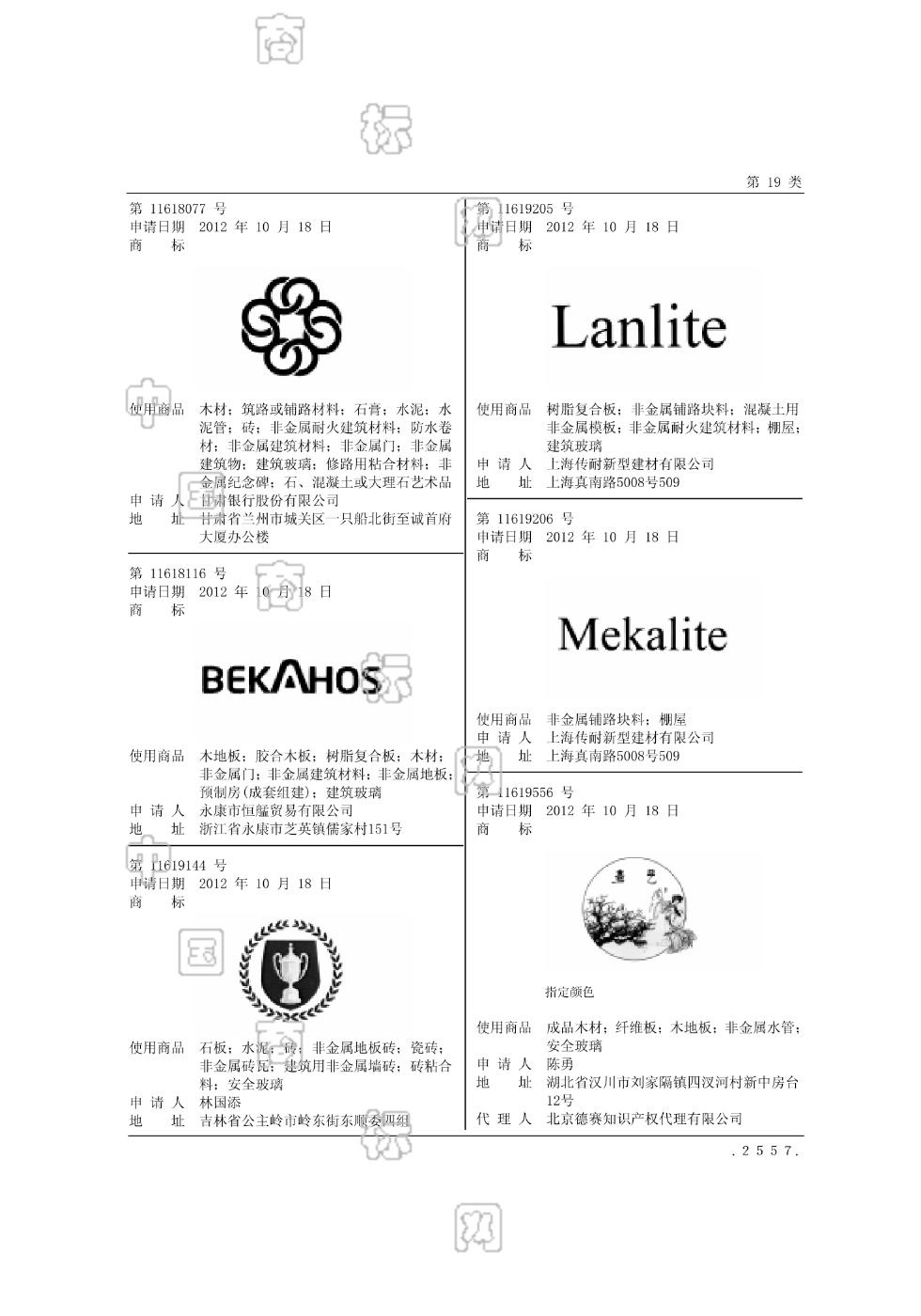 1901-树脂复合板;1902-非金属铺路块料;1905-混凝土用非金属模板;1907-非金属耐火建筑材料;1910-棚屋;1911-建筑玻璃 - 1398