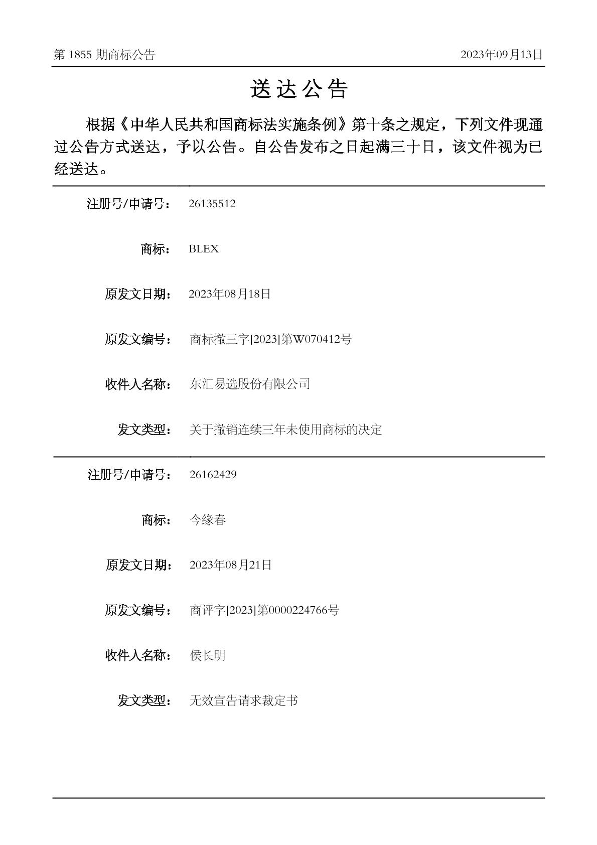 2023-09-13 撤销连续三年停止使用注册商标 | 排版送达公告(关于撤销连续三年未使用商标的决定)