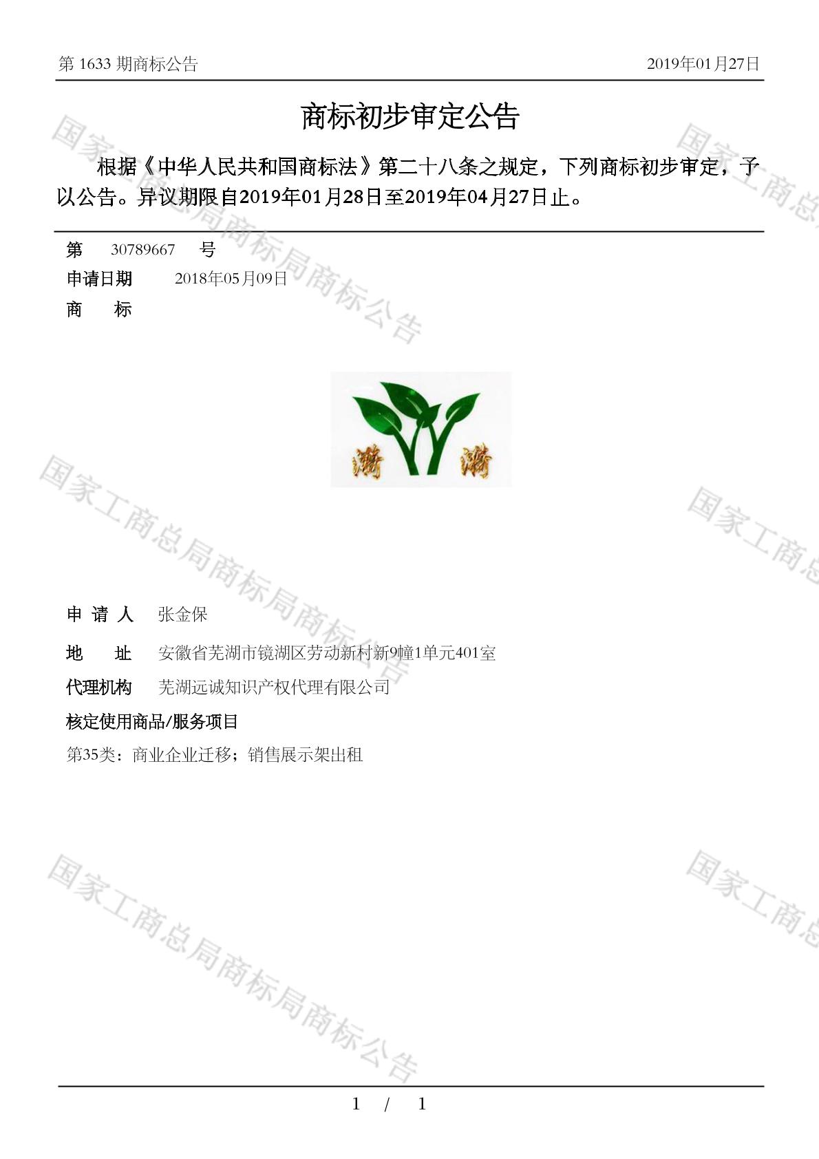 2018-05-09 商标注册申请 | 申请收文