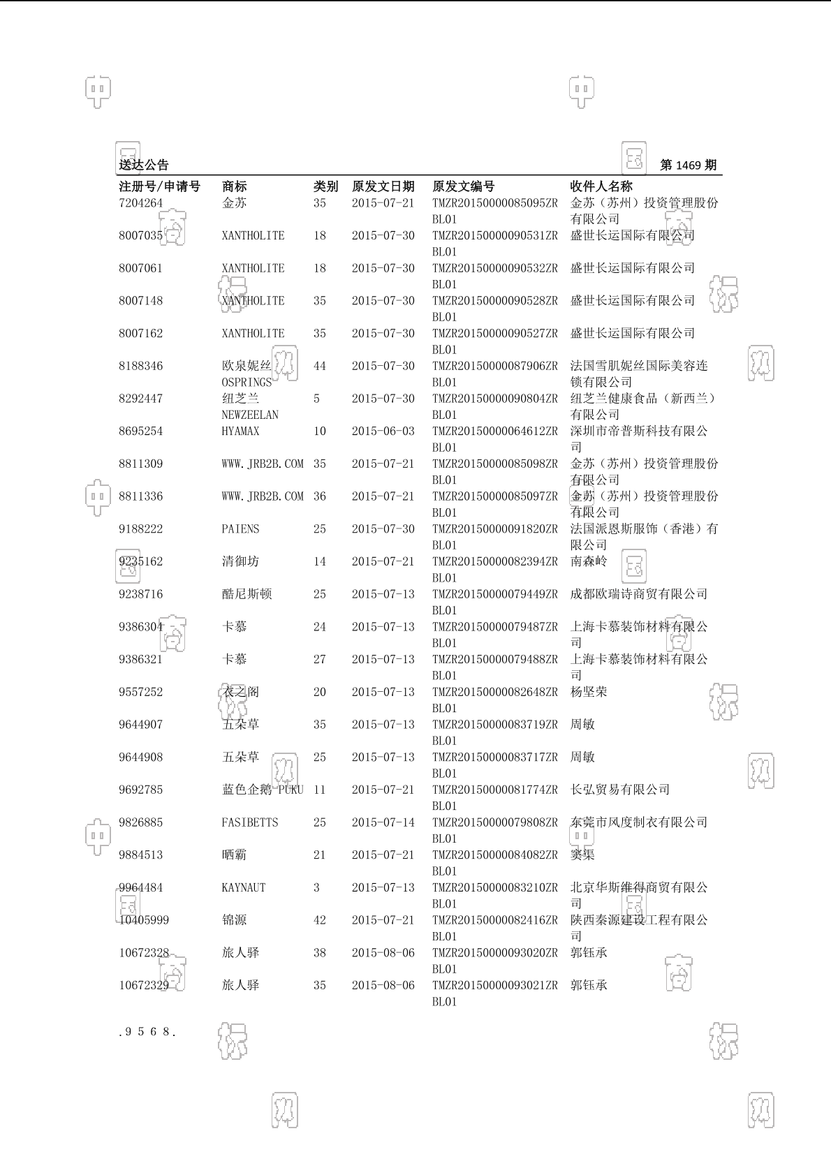 送达公告 2015-08-27 第1469期 查看公告