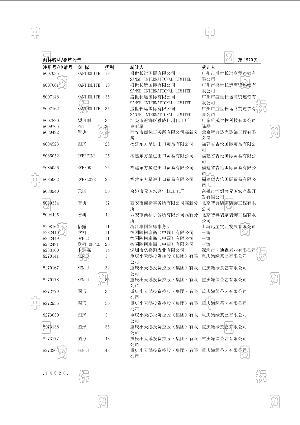 商标转让/移转公告 2025-11-27 第1961期 查看公告
