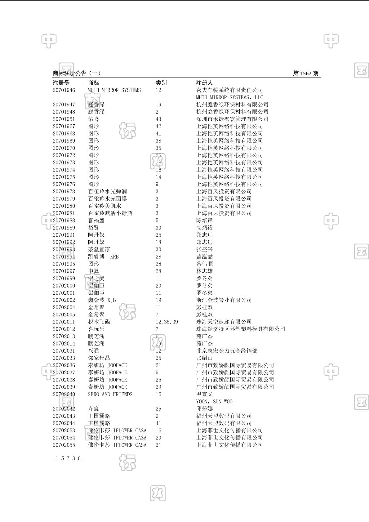 1801-半加工或未加工皮革;1801-裘皮;1802-帆布背包;1802-皮制家具罩;1802-购物袋;1804-伞;1804-伞套;1805-登山杖;1806-动物项圈;1807-制香肠用肠衣 - 1555