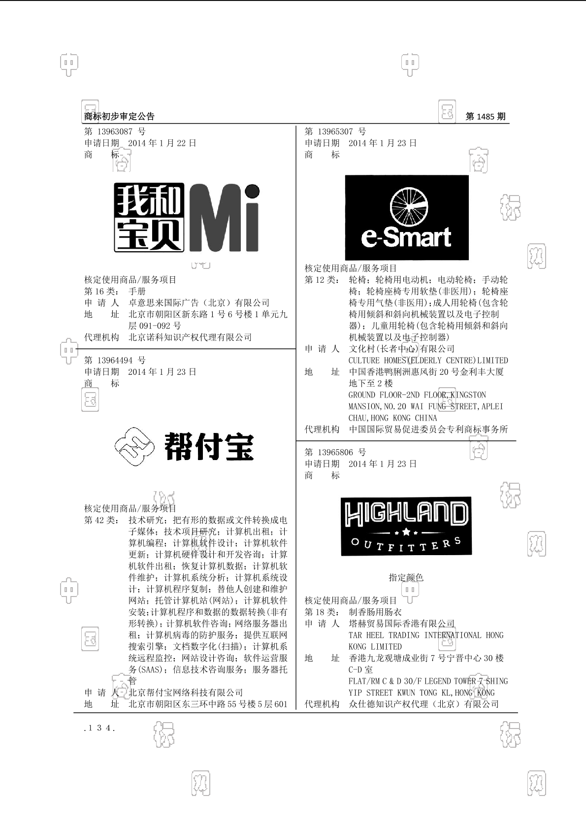 2014-11-19 商标注册申请 | 等待驳回通知发文