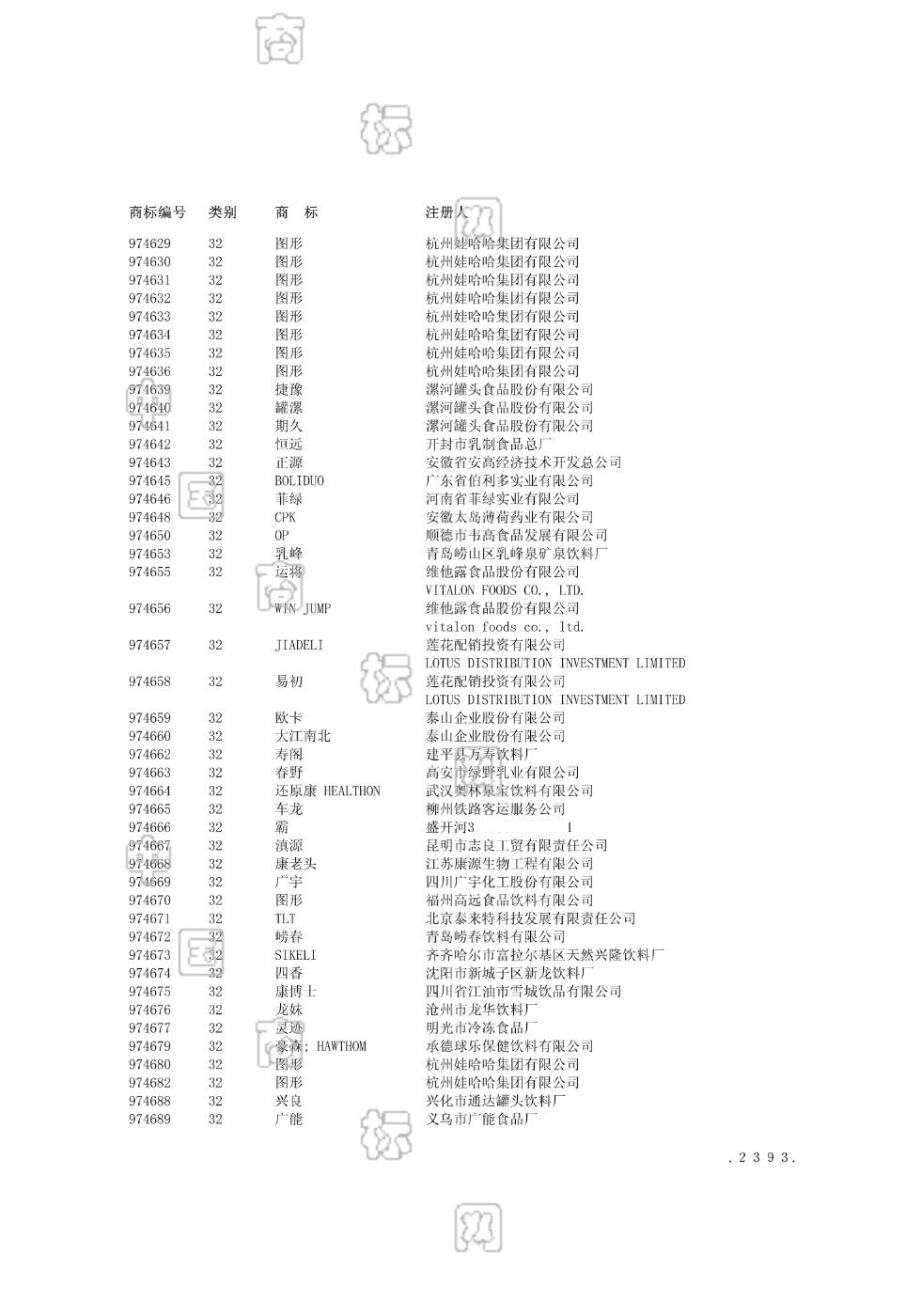 -固体饮料;-果汁饮料;3202-可 乐;3202-无酒精饮料;3202-水(饮料);3202-汽水;3202-矿泉水;3202-葡萄汁;3202-豆奶 - 574