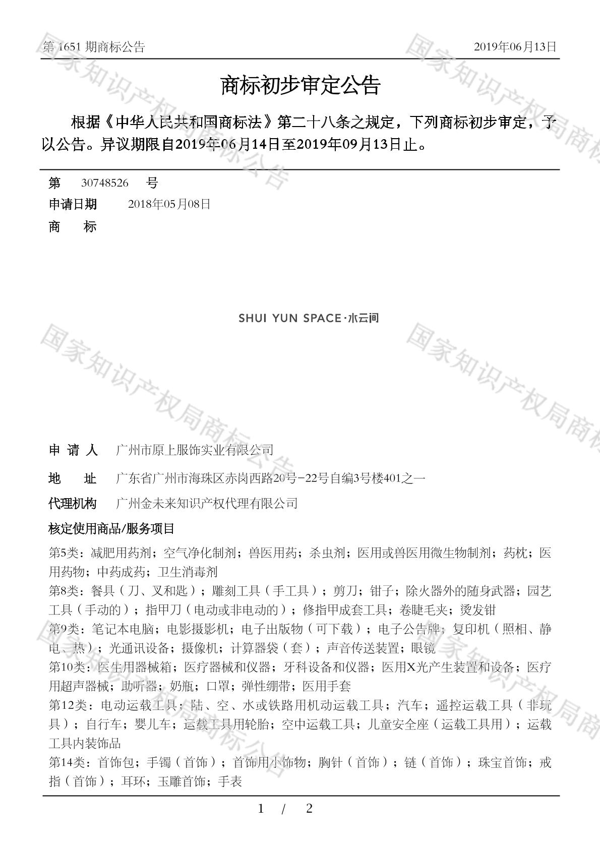 0301-洗发液;0301-洗面奶;0305-芳香精油;0306-化妆品;0306-口红;0306-美容面膜;0306-防晒剂;0306-香水;0307-牙膏;0308-香 - 广州市原上服饰实业有限公司