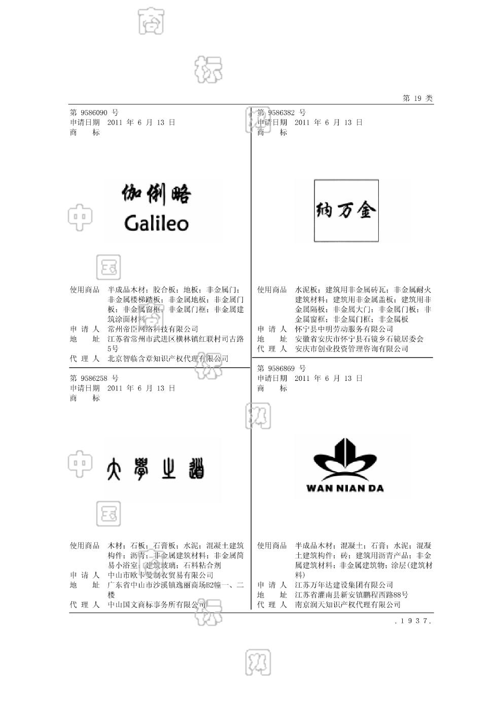 1905-水泥板;1906-建筑用非金属砖瓦;1907-非金属耐火建筑材料;1909-建筑用非金属盖板;1909-建筑用非金属隔板;1909-非金属大门;1909-非金属板;1909-非金属窗框;1909-非金属门板;1909-非金属门框 - 1306