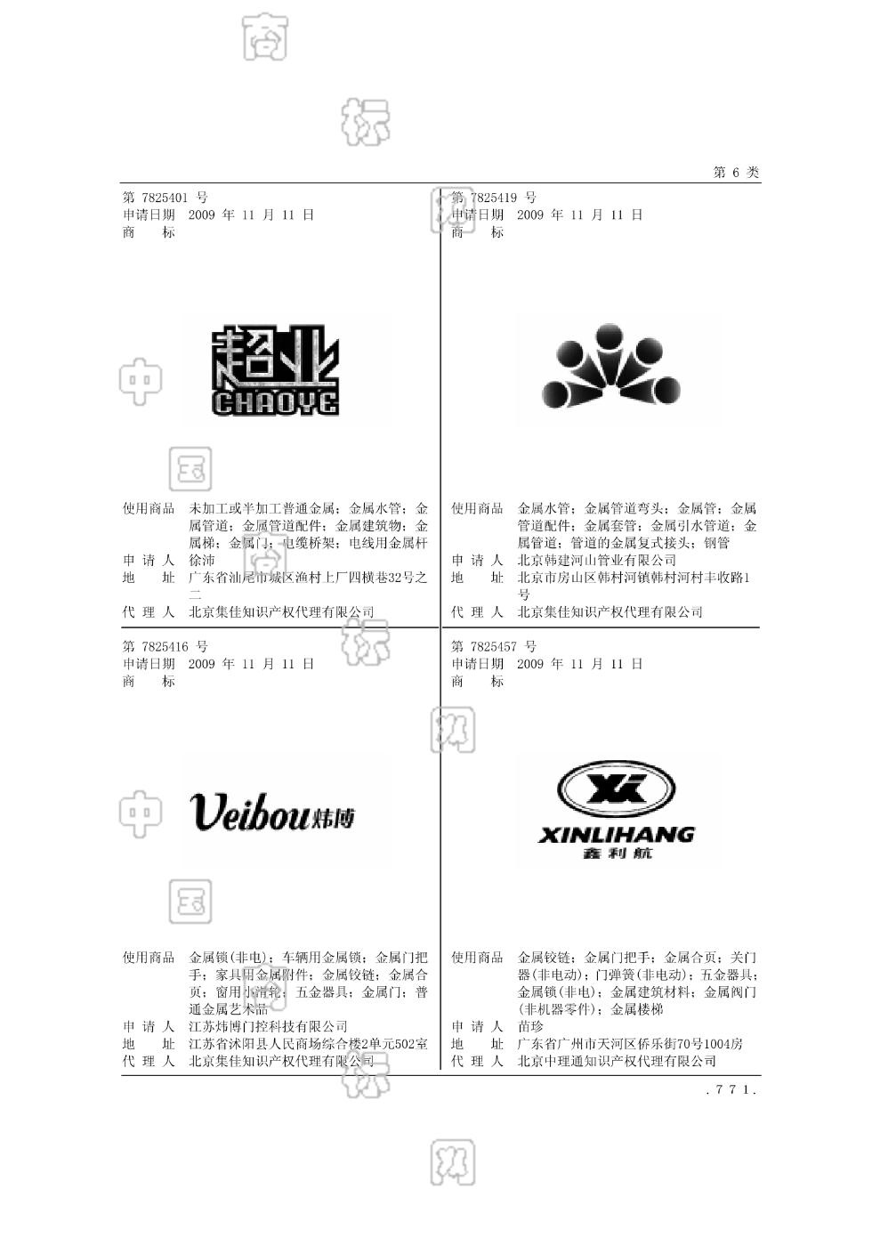 0603-金属门;0608-家具用金属附件;0608-窗用小滑轮;0608-金属合页;0608-金属铰链;0608-金属门把手;0609-五金器具;0610-车辆用金属锁;0610-金属锁(非电);0622-普通金属艺术品 - 1234