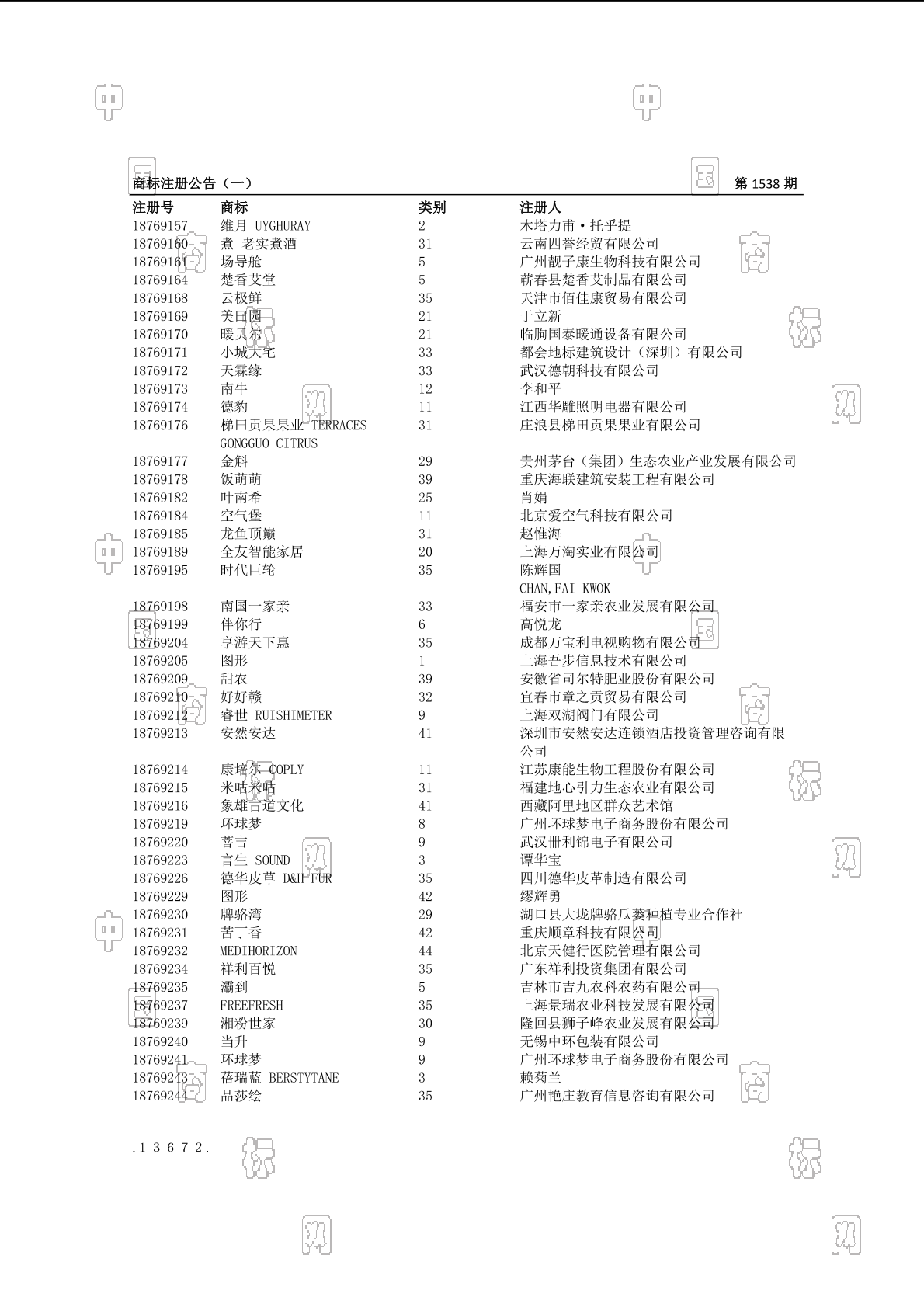 3201-啤酒;3202-以蜂蜜为主的无酒精饮料;3202-果汁;3202-植物饮料;3202-水(饮料);3202-汽水;3202-矿泉水(饮料);3202-豆浆;3202-豆类饮料;3202-酸梅汤 - 1526