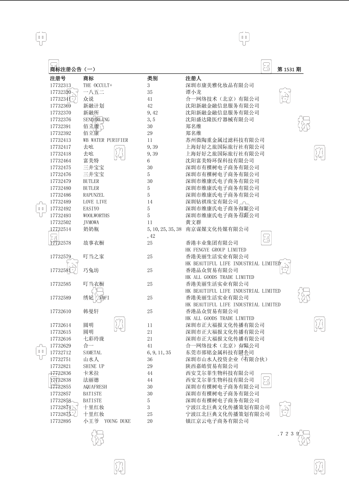 3501-为零售目的在通讯媒体上展示商品;3501-广告;3502-特许经营的商业管理;3503-为商品和服务的买卖双方提供在线市场;3503-替他人推销;3503-进出口代理;3504-职业介绍所;3505-商业企业迁移;3507-会计;3508-寻找赞助 - 1519