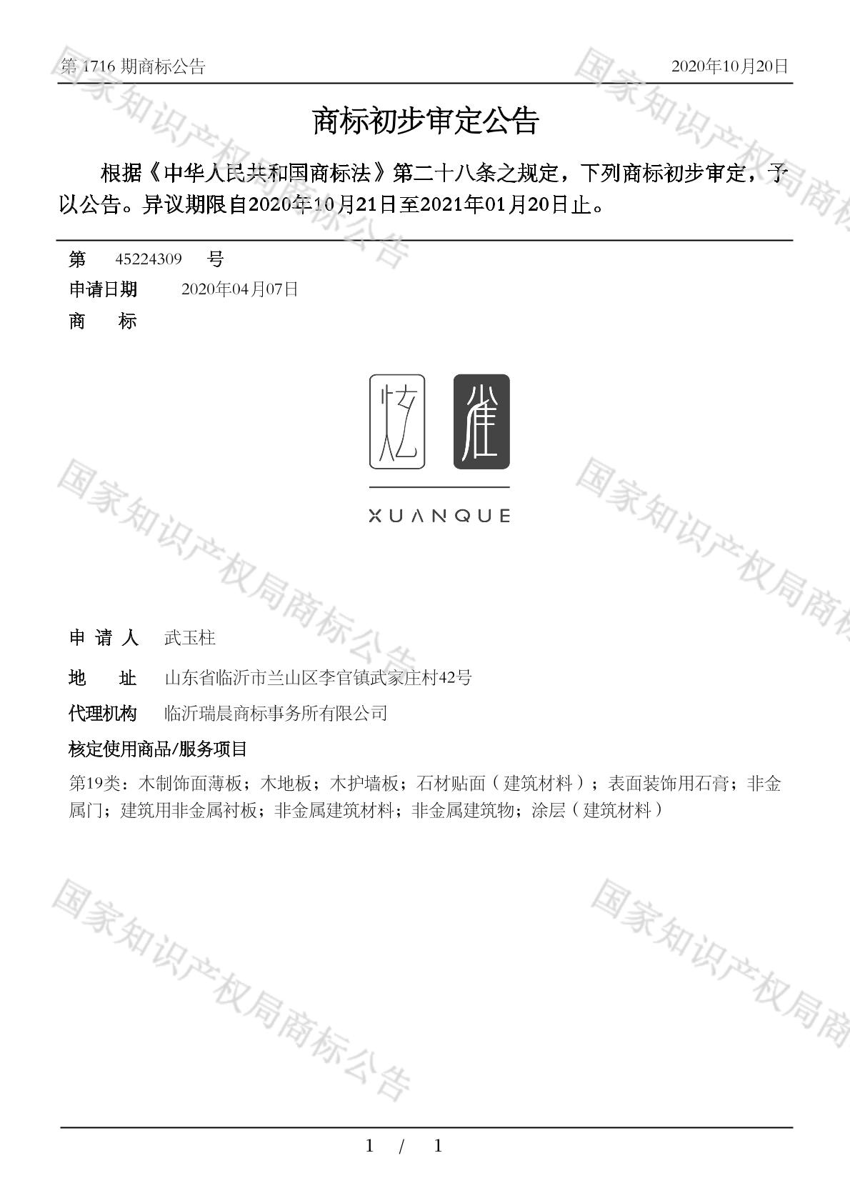 1901-木制饰面薄板;1901-木地板;1901-木护墙板;1902-石材贴面(建筑材料);1903-表面装饰用石膏;1909-建筑用非金属衬板;1909-非金属建筑材料;1909-非金属门;1910-非金属建筑物;1912-涂层(建筑材料) - 1716