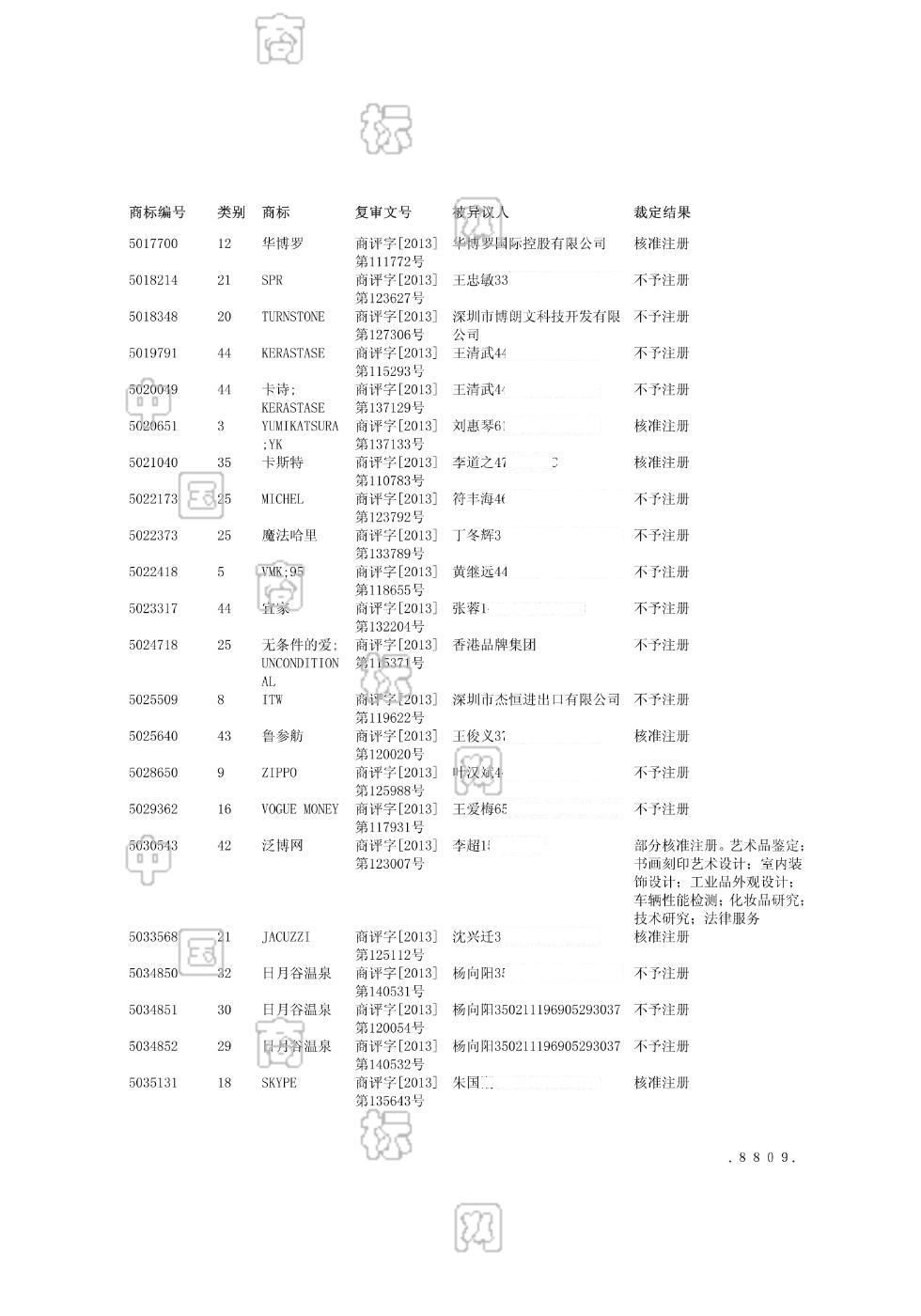 商标异议复审裁定公告 2014-04-27 第1405期 查看公告