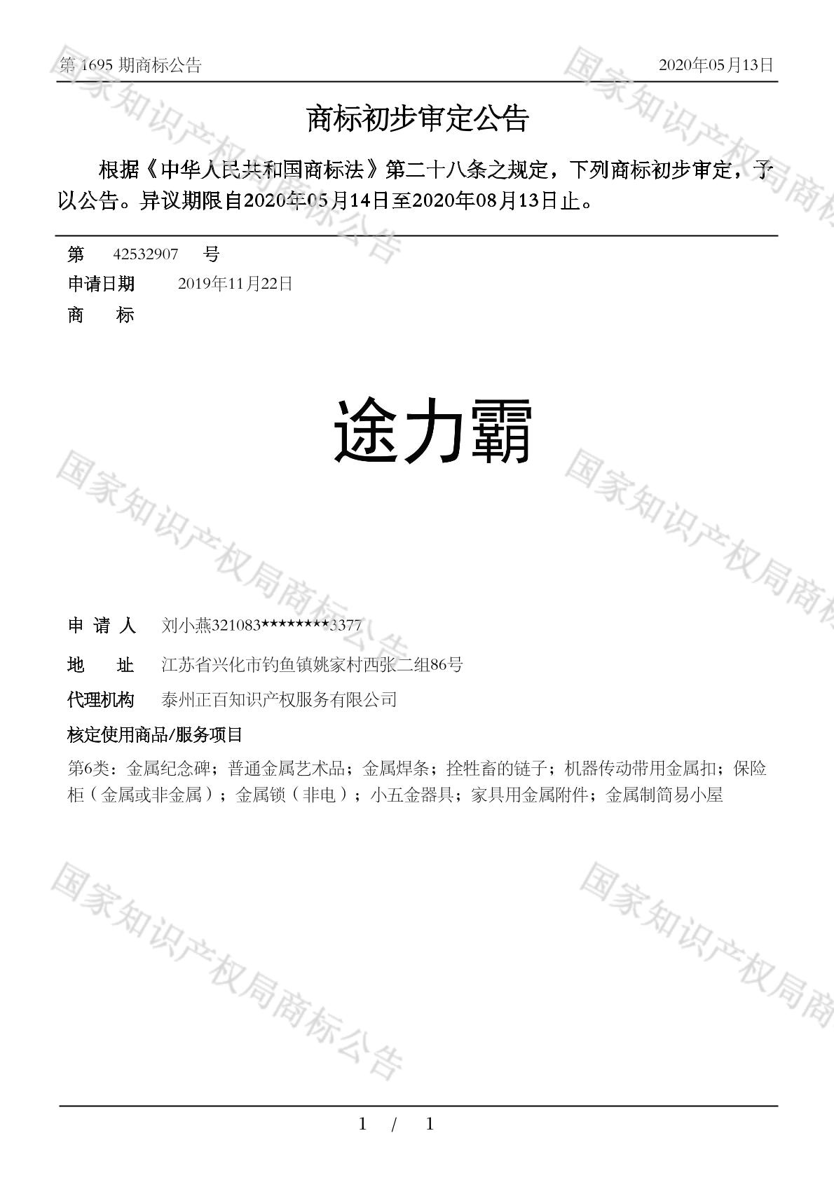 0603-金属制简易小屋;0607-小五金器具;0608-家具用金属附件;0608-小五金器具;0609-小五金器具;0610-金属锁(非电);0611-保险柜(金属或非金属);0612-机器传动带用金属扣;0615-拴牲畜的链子;0616-金属焊条;0622-普通金属艺术品;0624-金属纪念碑 - 1695