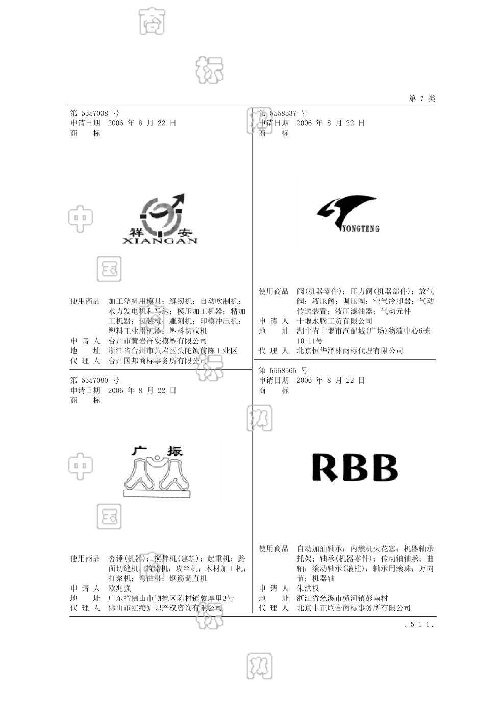0713-缝纫机;0716-雕刻机;0721-包装机;0726-加工塑料用模具;0726-塑料工业用机器:塑料切粒机;0726-模压加工机器;0727-自动吹制机;0736-印模冲压机;0739-水力发电机和马达;0742-精加工机器 - 1168