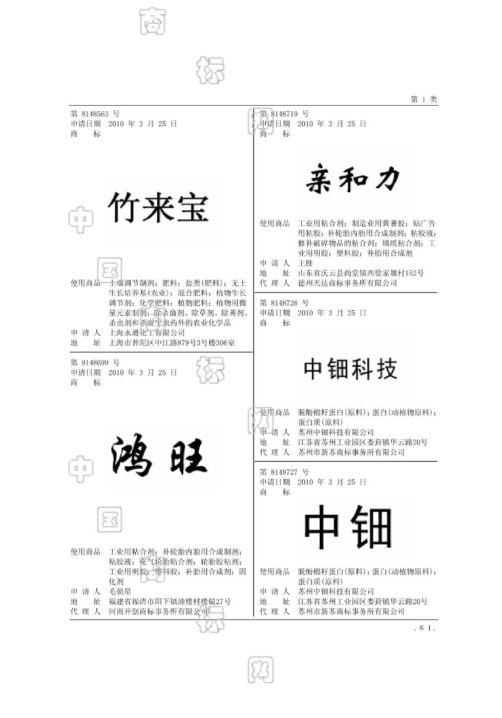 0105-植物用微量元素制剂;0105-除杀菌剂、除草剂、除莠剂、杀虫剂和杀寄生虫药外的农业化学品;0109-化学肥料;0109-土壤调节制剂;0109-无土生长培养基(农业);0109-植物生长调节剂;0109-植物肥料;0109-混合肥料;0109-盐类(肥料);0109-肥料 - 1245