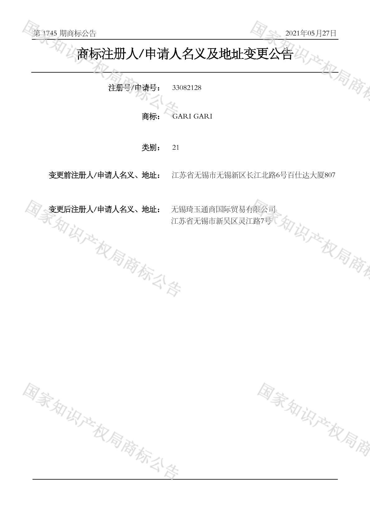 2021-05-18 变更商标申请人/注册人名义/地址 | 核准证明打印发送