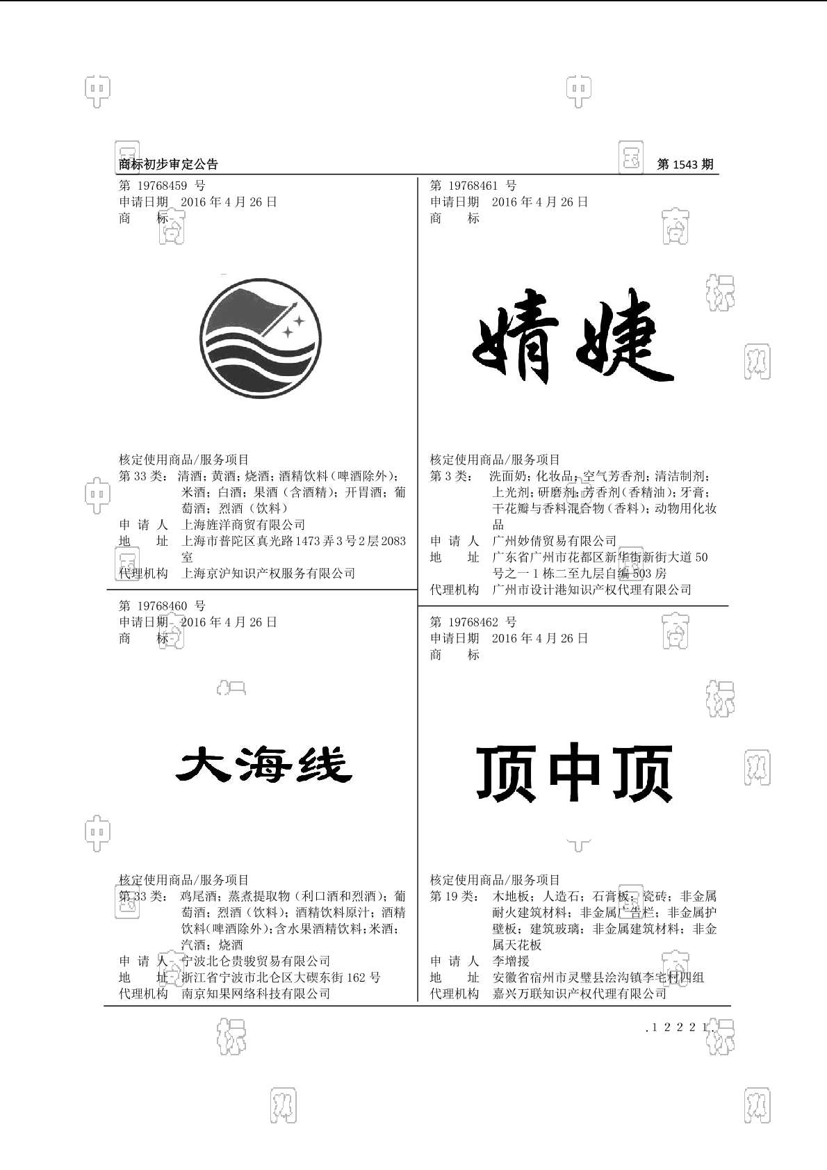 1901-木地板;1902-人造石;1903-石膏板;1906-瓷砖;1907-非金属耐火建筑材料;1909-非金属天花板;1909-非金属建筑材料;1909-非金属护壁板;1910-非金属广告栏;1911-建筑玻璃 - 1543