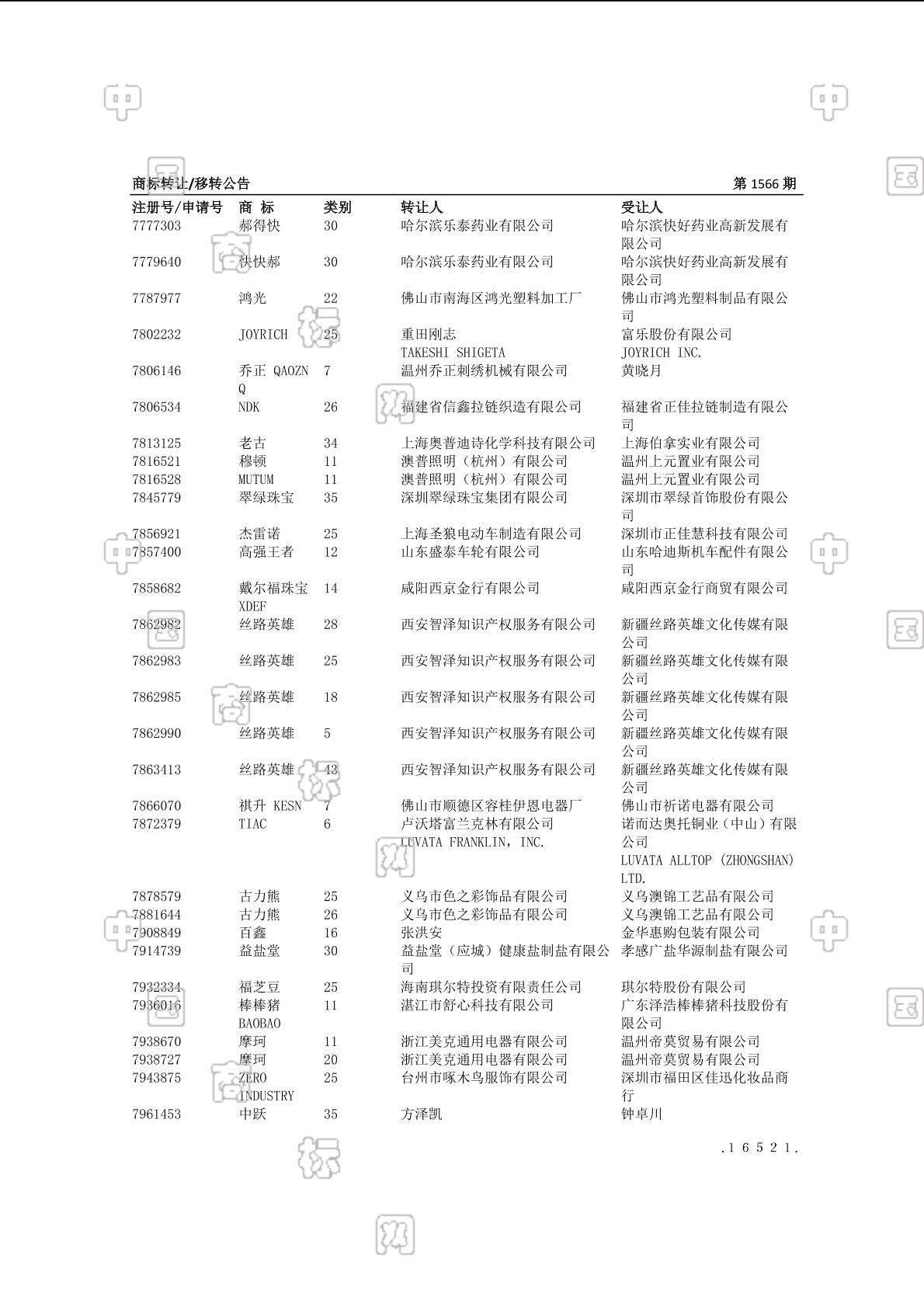 2017-02-17 商标转让 | 申请收文