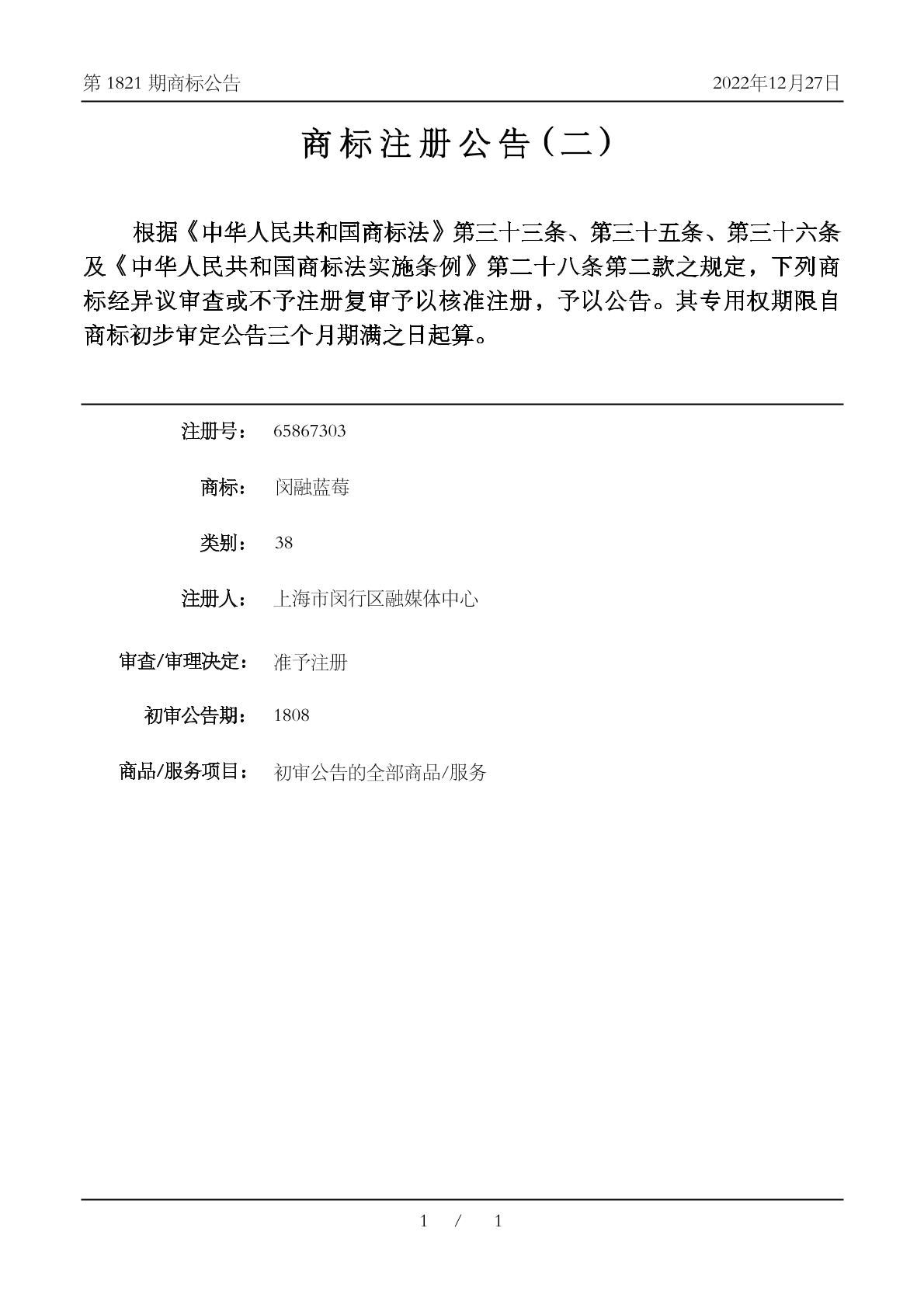 3801-互联网广播服务;3801-新闻社服务;3801-无线广播;3801-无线电节目广播;3801-有线广播服务;3802-信息传送;3802-提供互联网聊天室;3802-提供全球计算机网络用户接入服务;3802-数据流传输;3802-视频点播传输 - 1808
