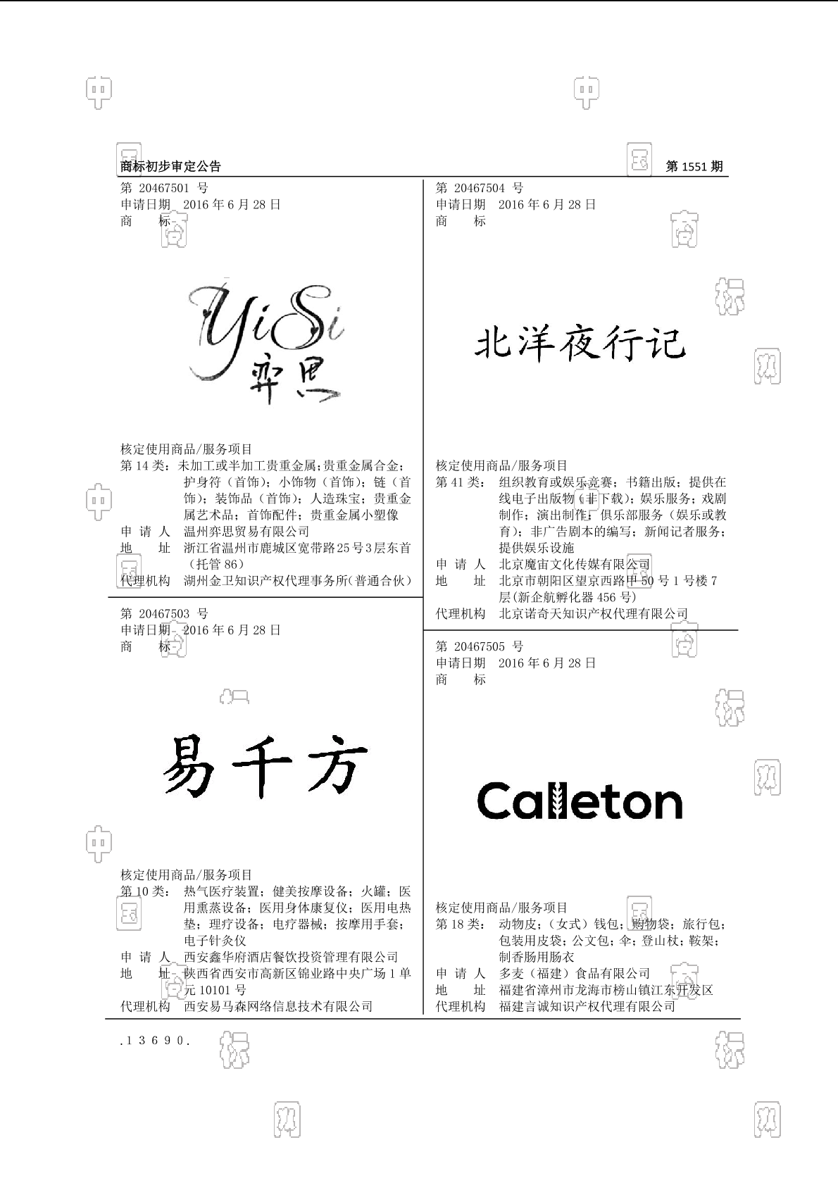 2016-11-04 商标注册申请 | 等待受理通知书发文