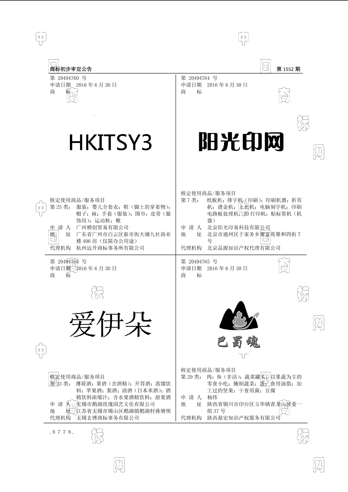 2016-06-30 商标注册申请 | 申请收文