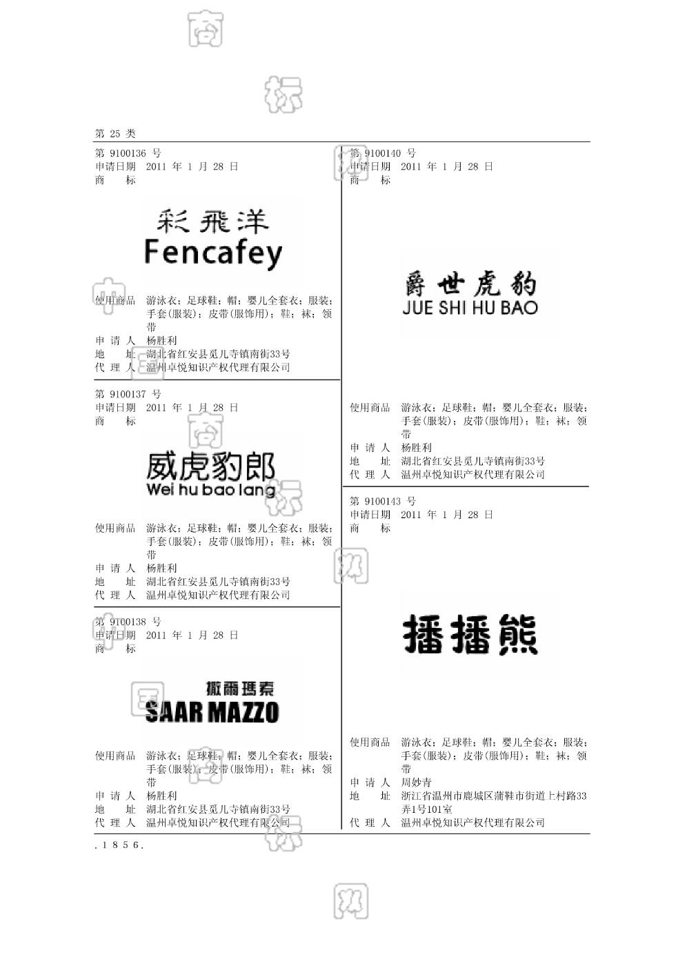2501-服装;2502-婴儿全套衣;2503-游泳衣;2506-足球鞋;2507-鞋;2508-帽;2509-袜;2510-手套(服装);2511-领带;2512-皮带(服饰用) - 1286